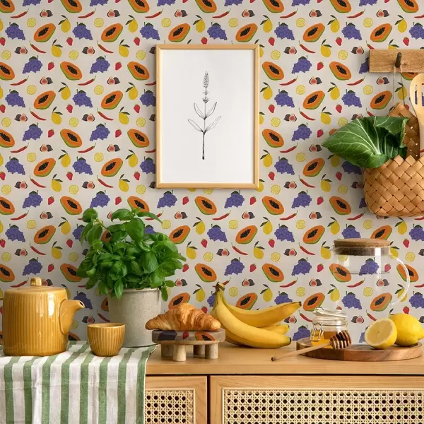 Tapet Papaya, druvor och citroner – en ljus fruktblandning Nr. a00803