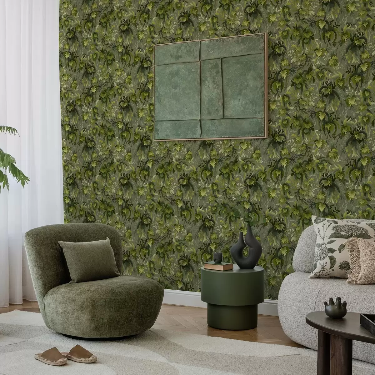 Tapet Tätt grönt bladverk på grågrön bakgrund Nr. a00805v1