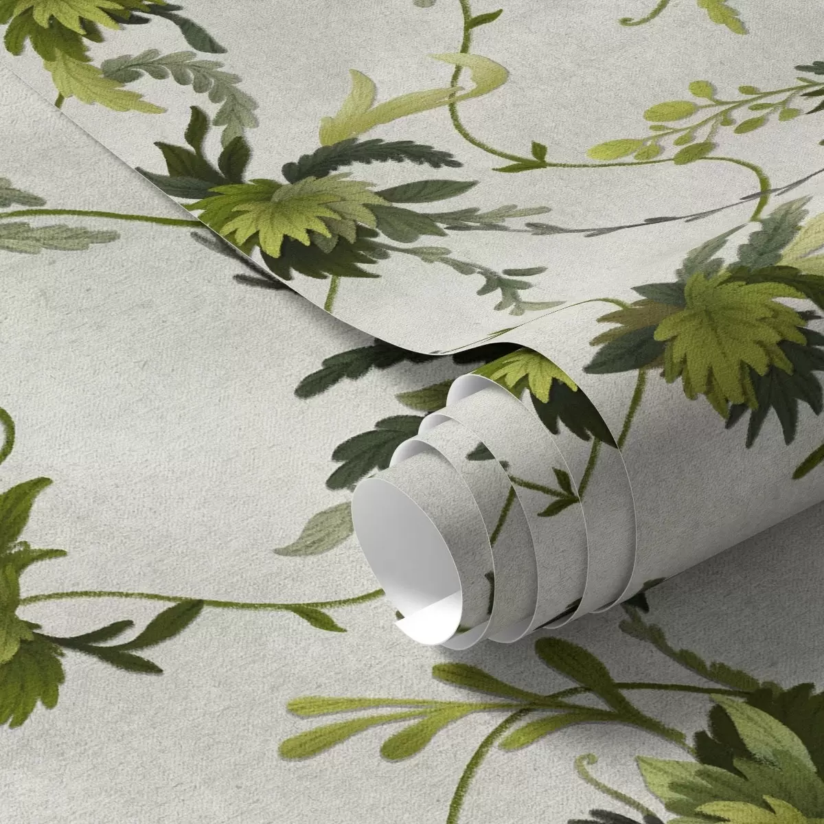 Tapet Klättrande grenar med löv på ljus bakgrund Nr. a00806