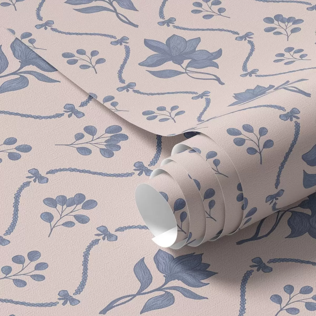 Tapet Små blommor och band i blå och rosa nyanser Nr. a00808v3
