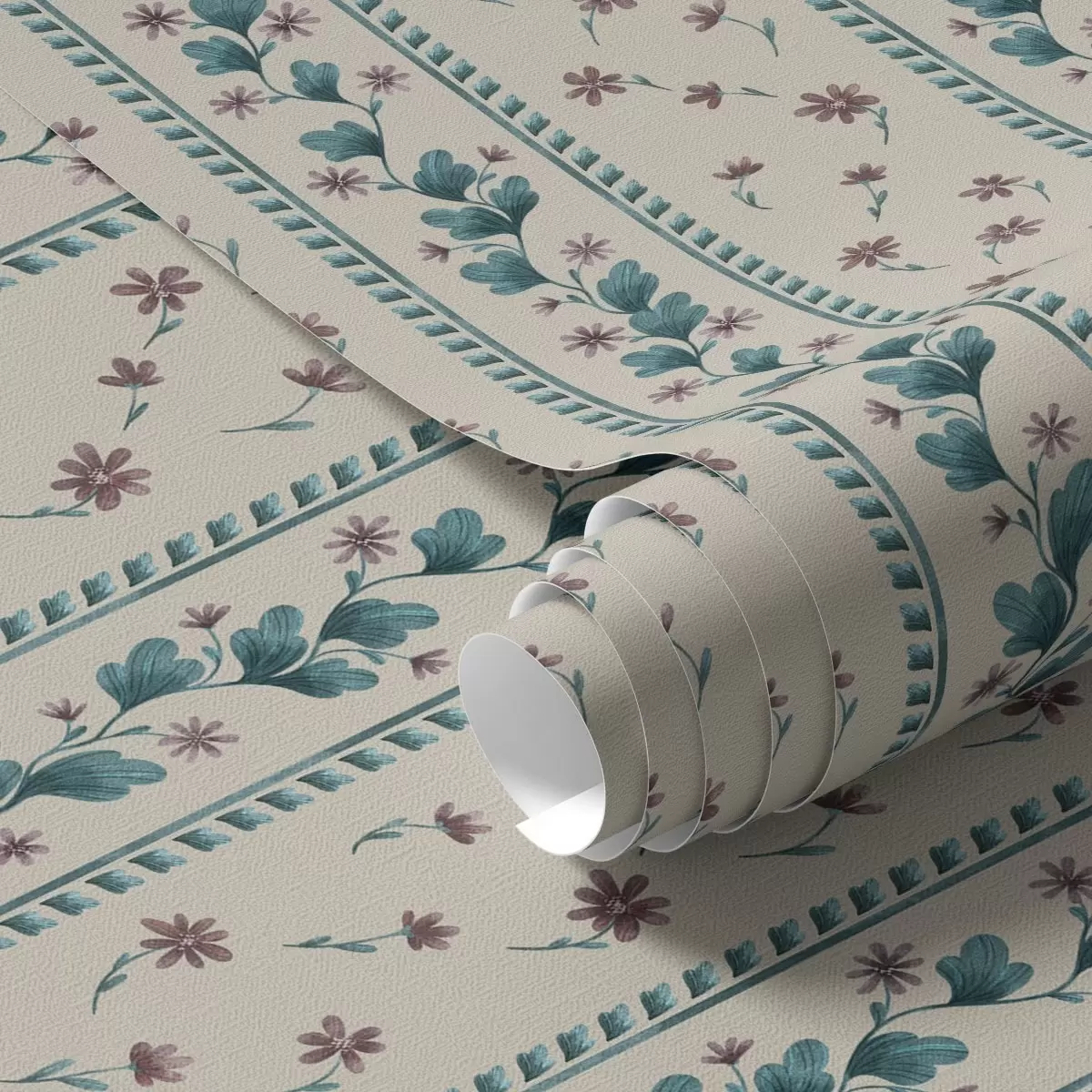 Tapet Vertikala blommiga ränder i blåbruna toner Nr. a00811v1