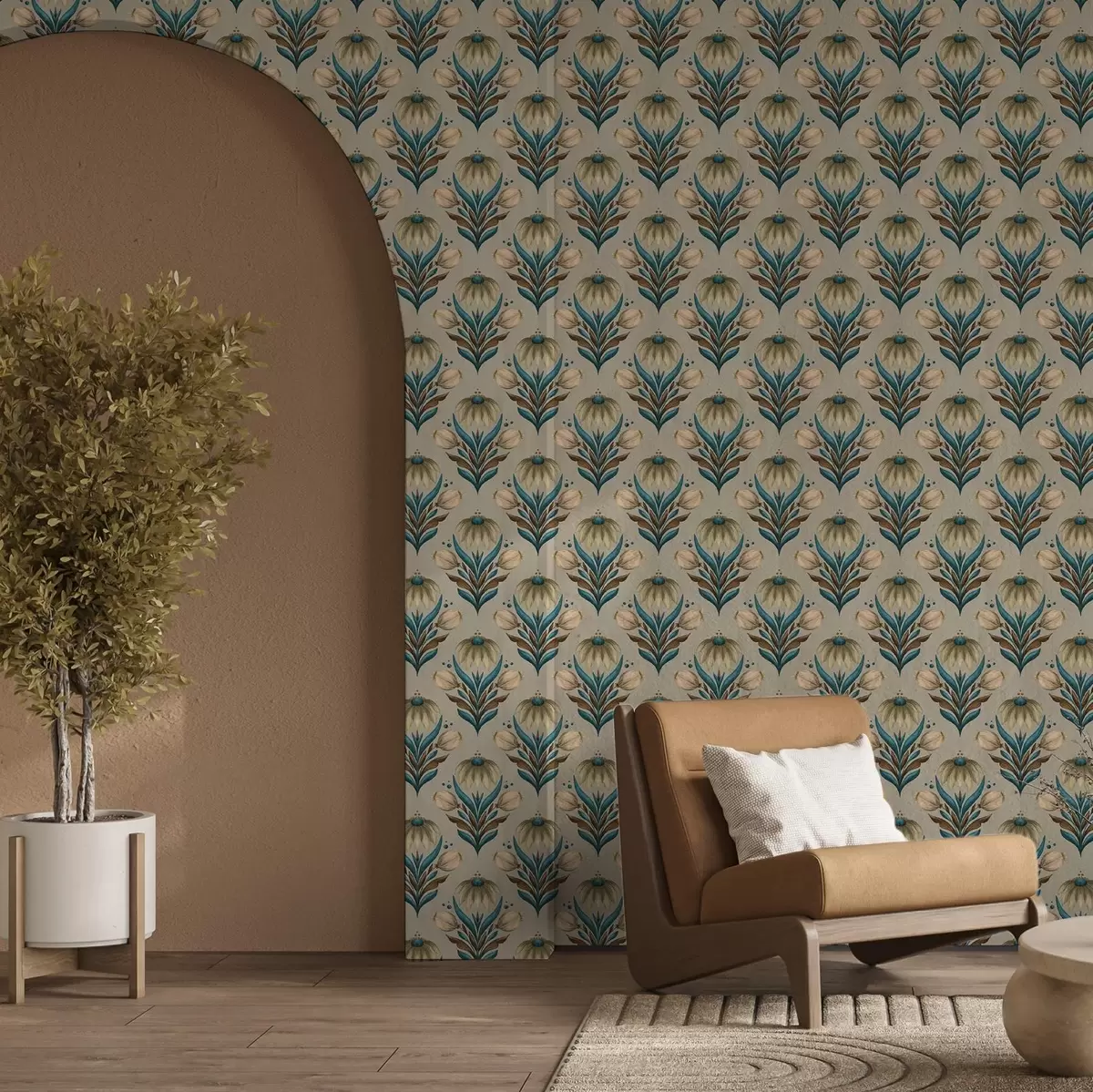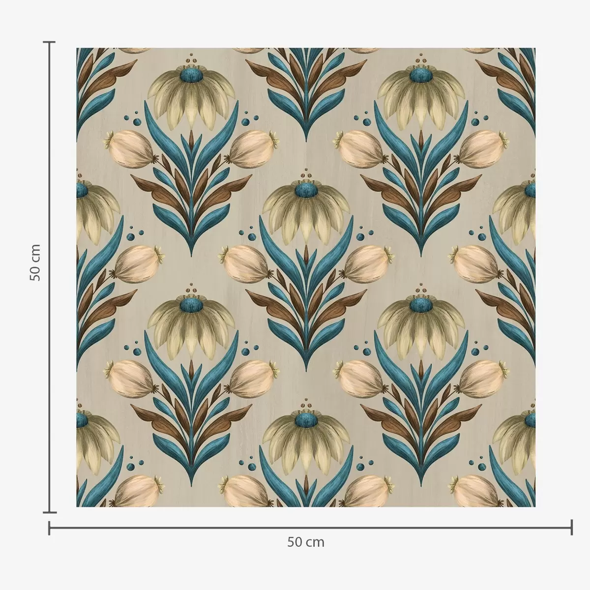 Tapet Symmetrisk blommig ornament i varma toner Nr. a00812