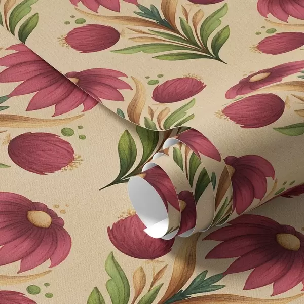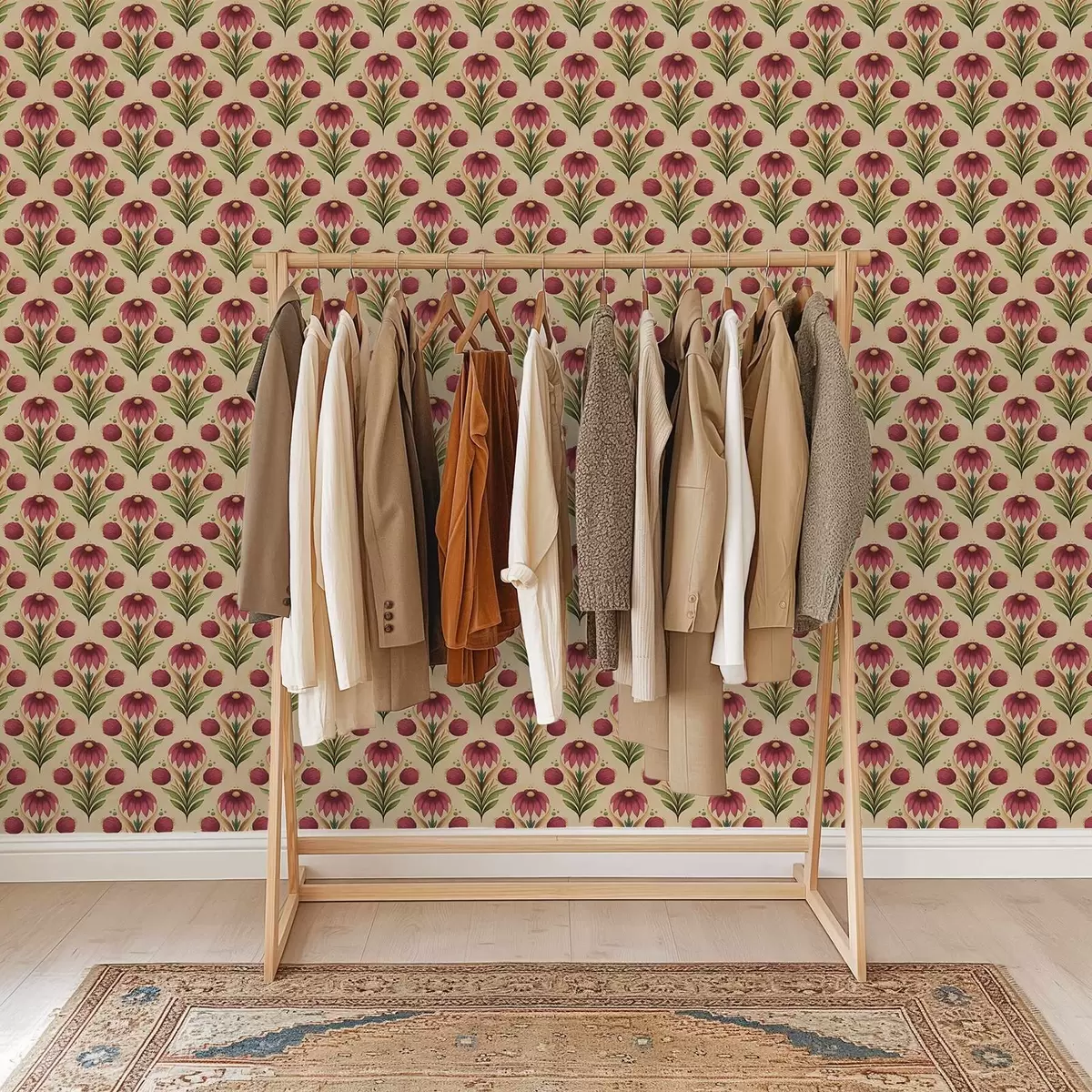 Tapet Symmetriskt blommönster på varm beige bakgrund Nr. a00812v6