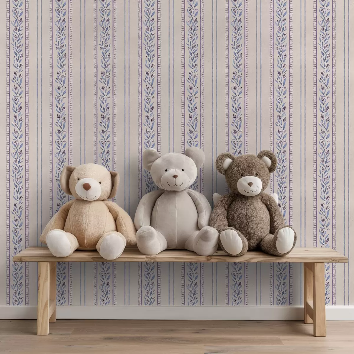 Tapet Vertikala ränder med lavendelfärgade vignetter, varm beige Nr. a00813