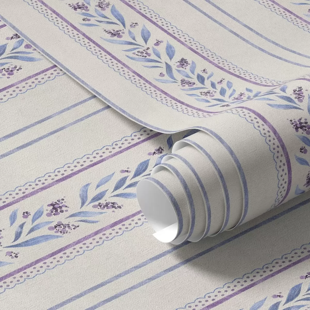 Tapet Vertikala ränder med lavendelgirlander, beige bakgrund Nr. a00813v1