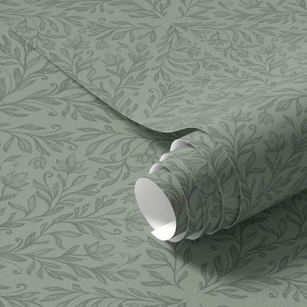 Tapet Fin botanisk damast i dämpad grön färg Nr. a00815v1