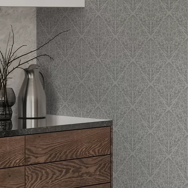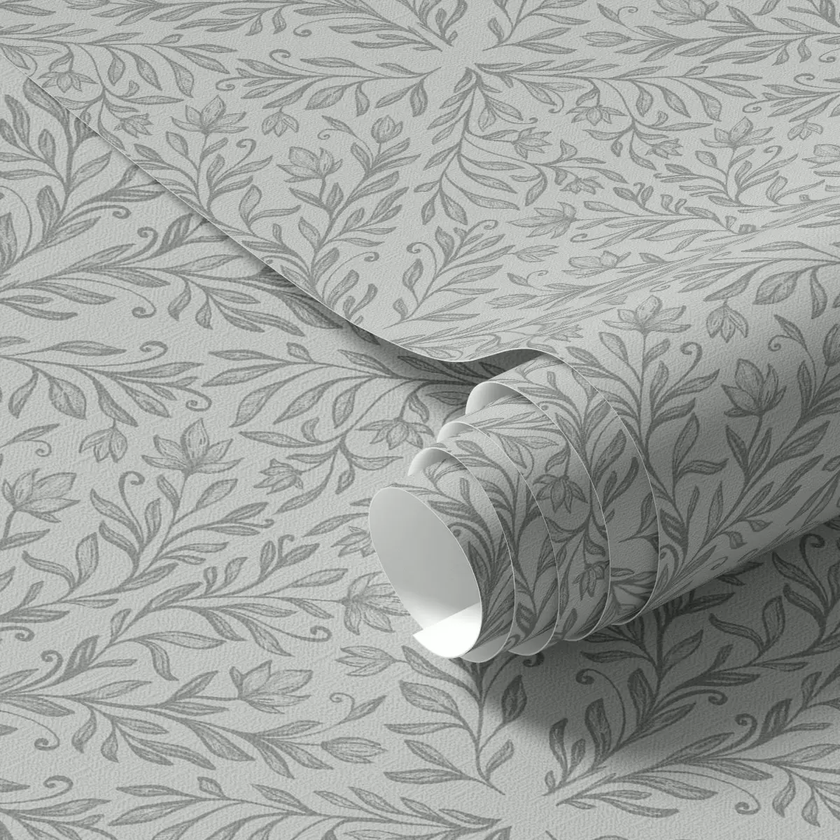 Tapet Botanisk damast i ljusgrått med mjuka konturer Nr. a00815v2