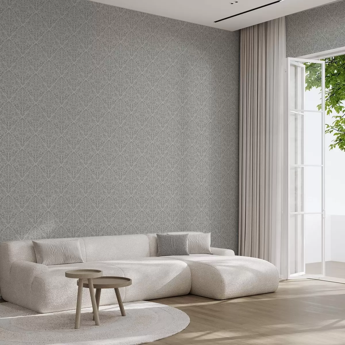 Tapet Botanisk damast i ljusgrått med mjuka konturer Nr. a00815v2