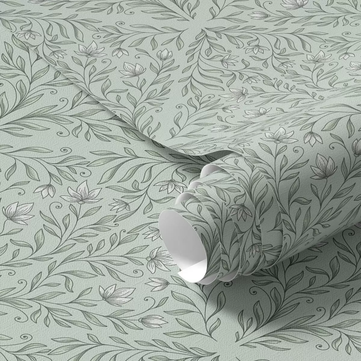 Tapet Lacy fotograferar på pastellgrönt, milt djup Nr. a00815v3