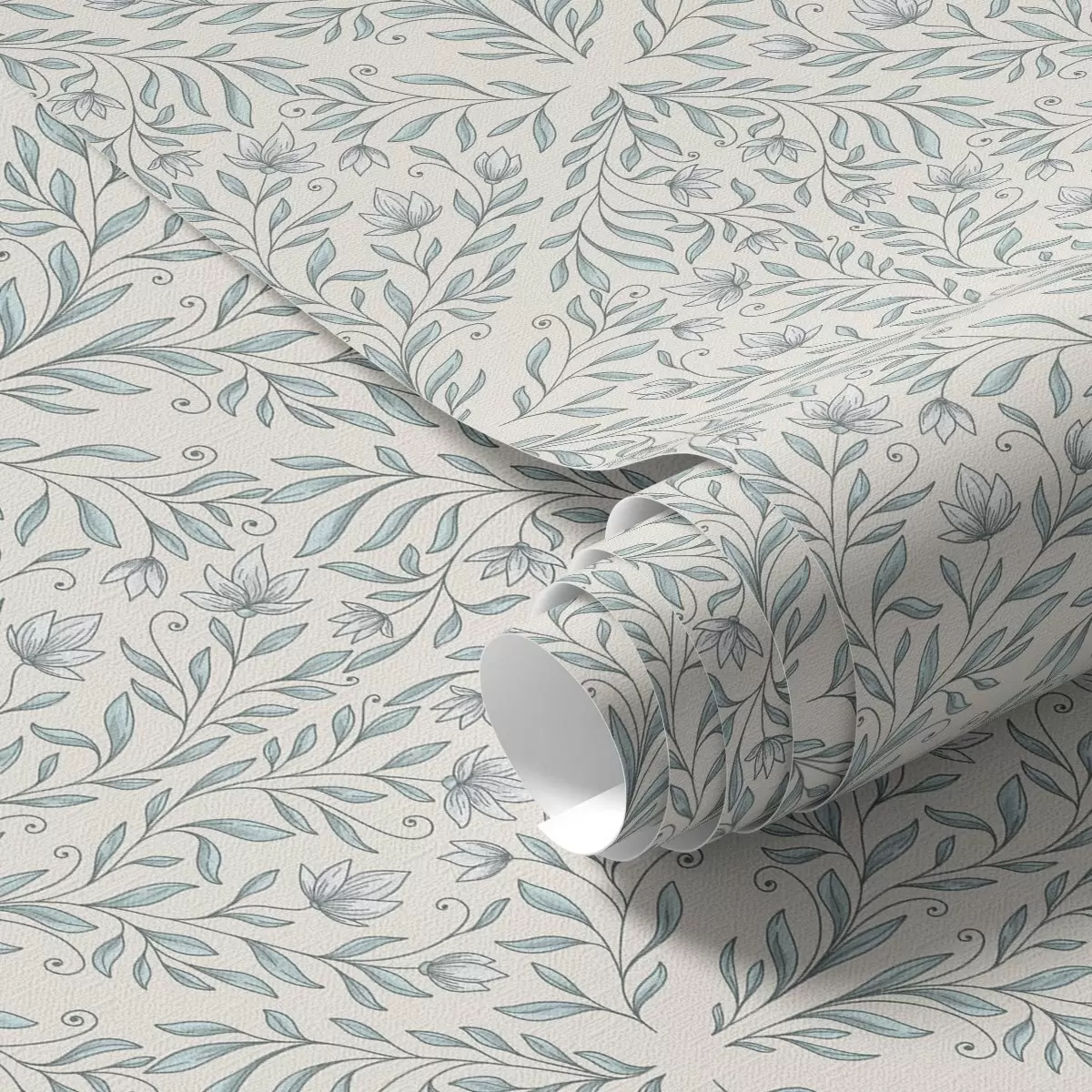 Tapet Spetsiga skott på krämvit med turkos kontur Nr. a00815v4