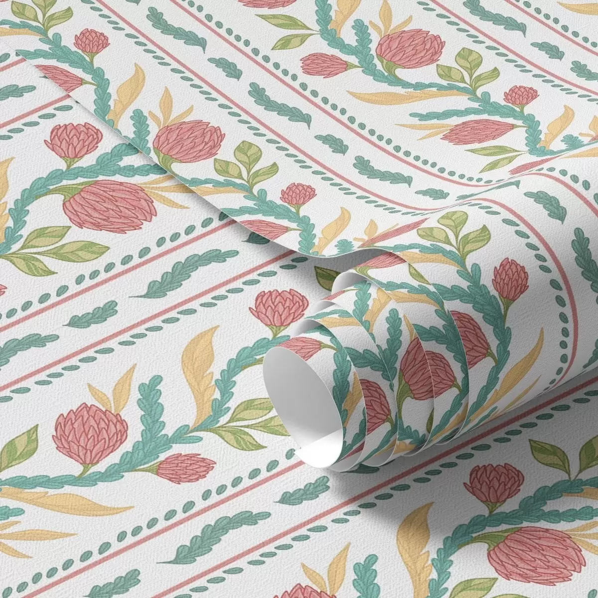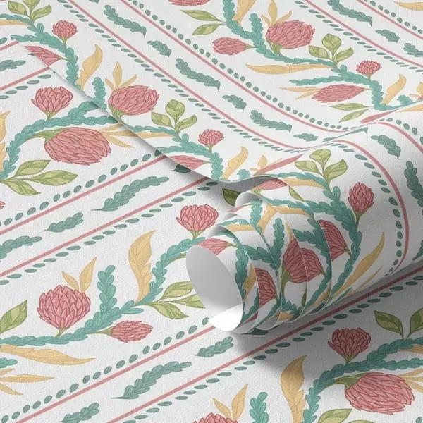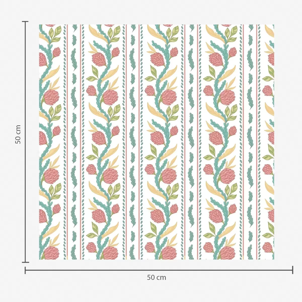 Tapet Vertikala ränder med korallblommor och turkosa blad Nr. a00816