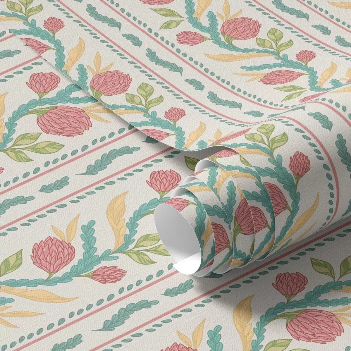 Tapet Ränder med korallknoppar på ljus krämfärgad bakgrund Nr. a00816v1