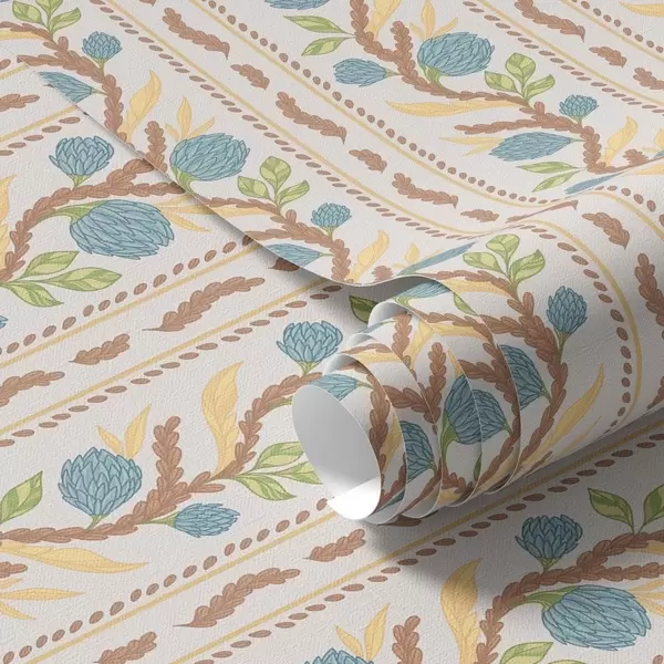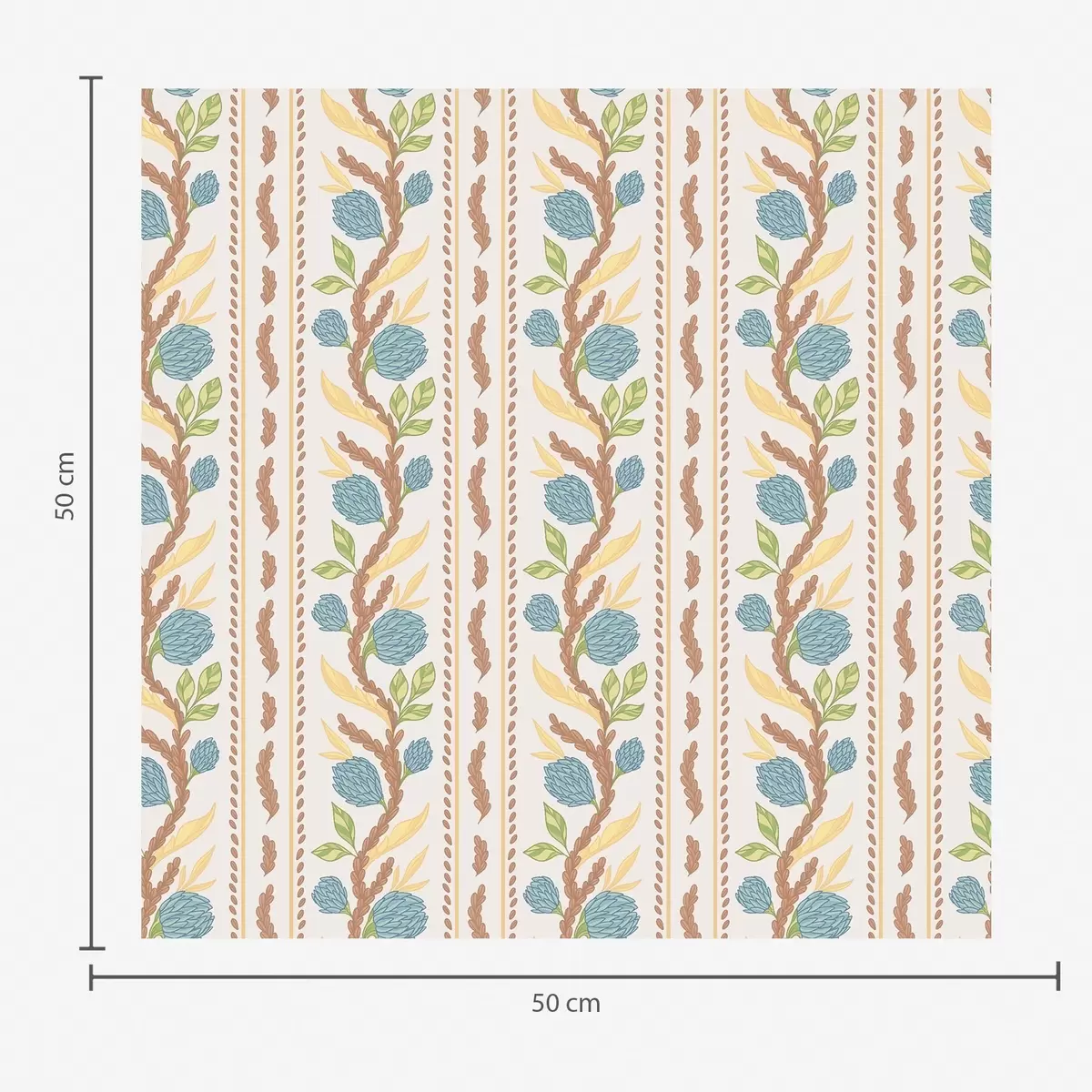 Tapet Vertikala bukettränder med blå blommor på en varm bakgrund Nr. a00816v3