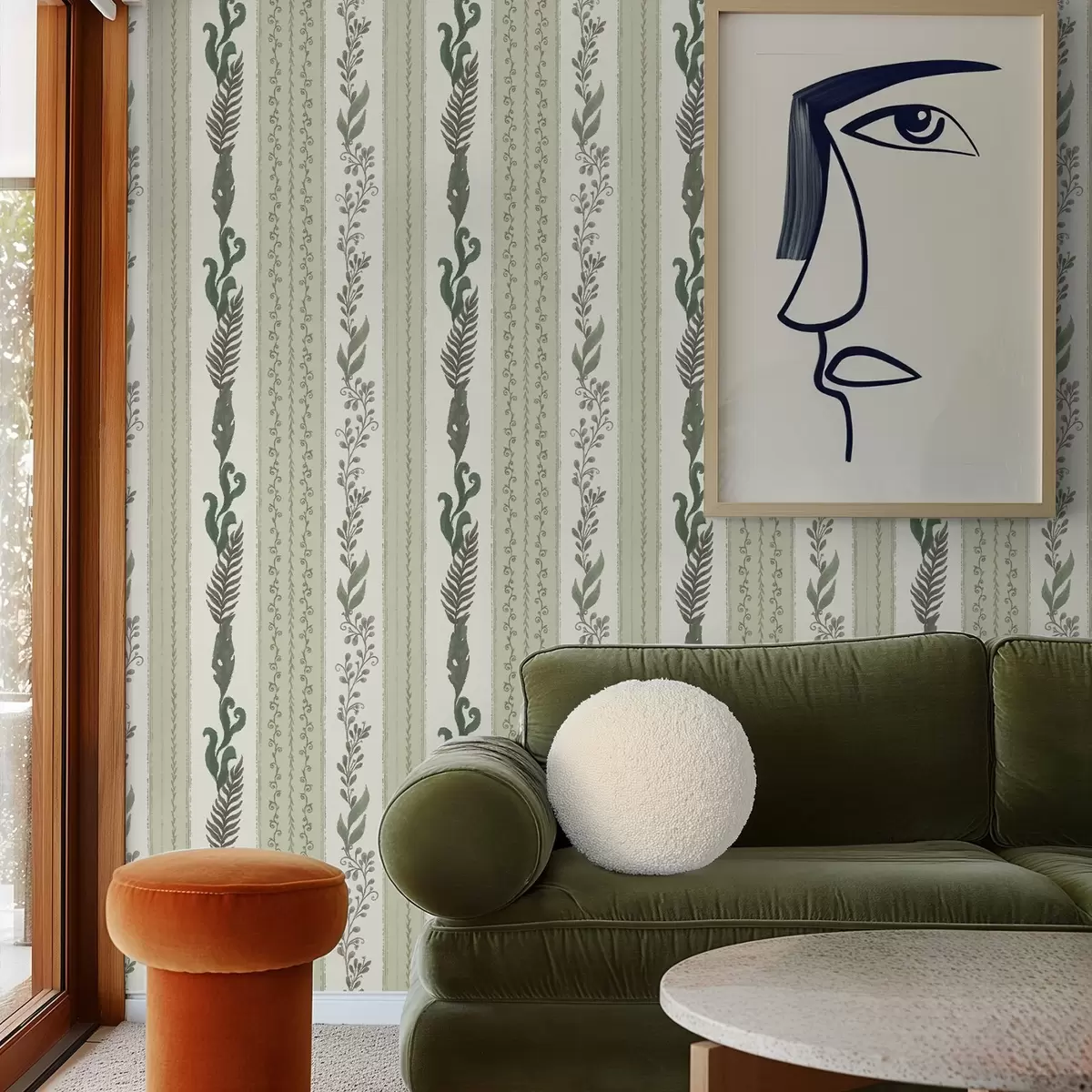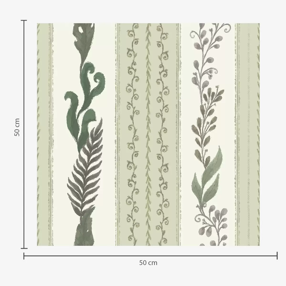 Tapet Ränder med grenar i gröna och grå nyanser, mjuk kontrast Nr. a00824