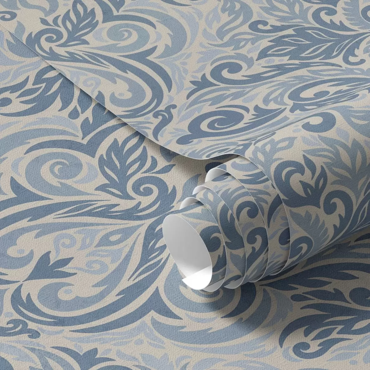 Tapet Klassisk damast, blå motiv på krämfärgat underlag Nr. a00826v1
