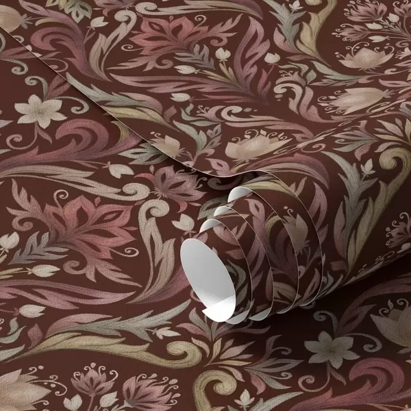 Tapet Tulpanornament, rik burgundy bakgrund Nr. a00827v2