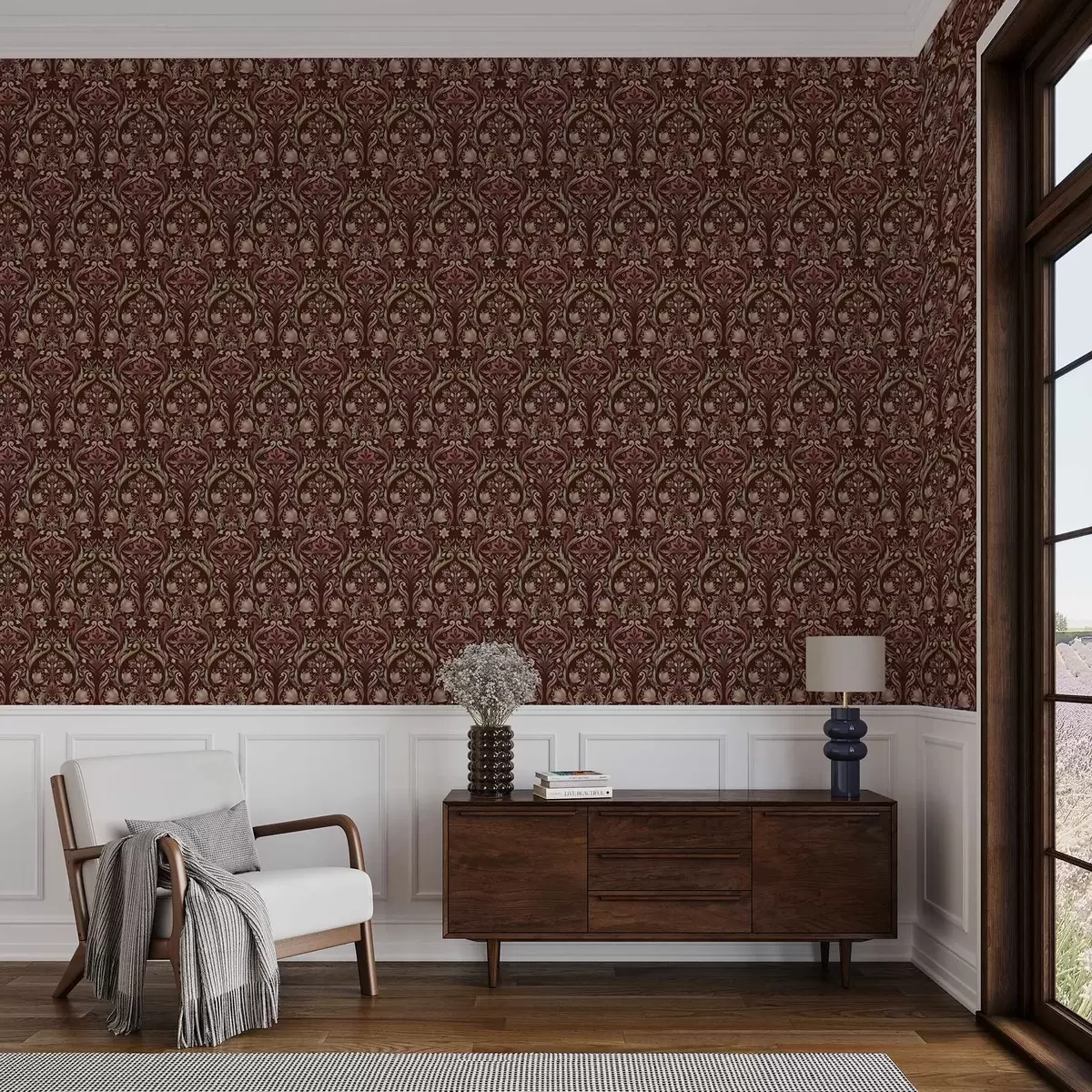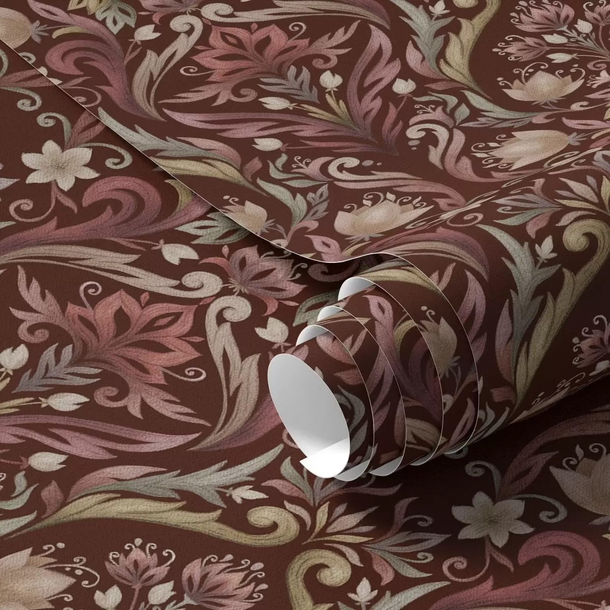 Tapet Tulpanornament, rik burgundy bakgrund Nr. a00827v2