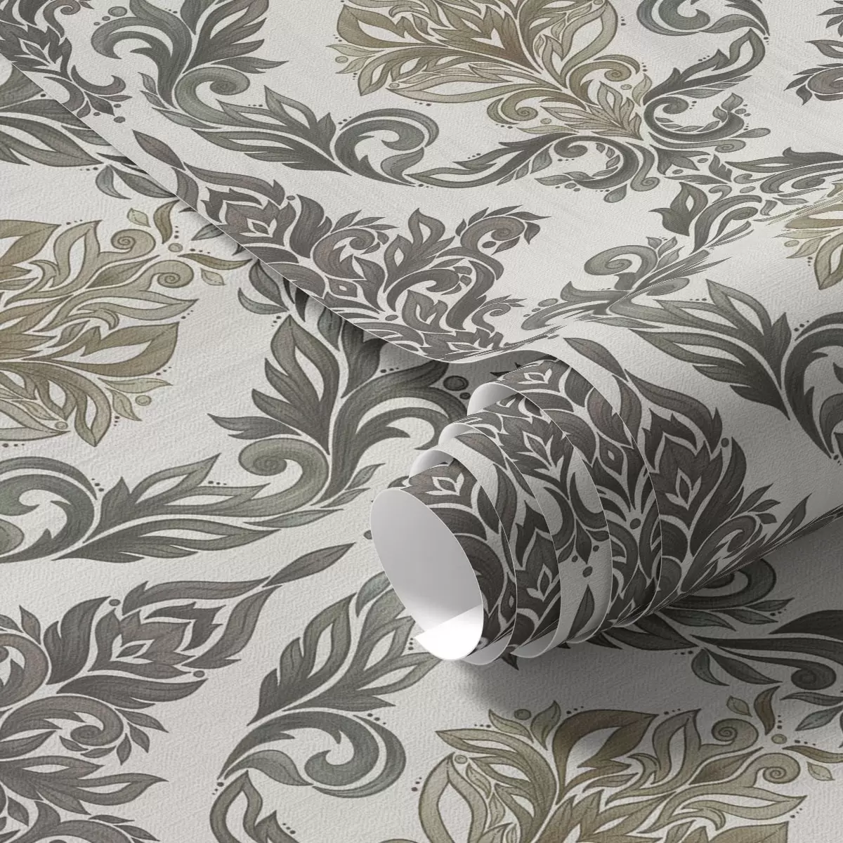 Tapet Damast på ljus bakgrund, olivbronsfärgade accenter Nr. a00828v6