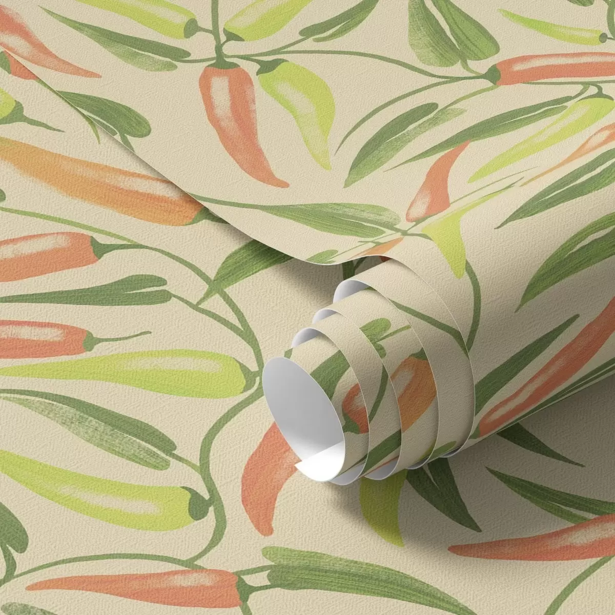 Tapet Grenar med röda och gröna paprikor på en varm bakgrund Nr. a00829