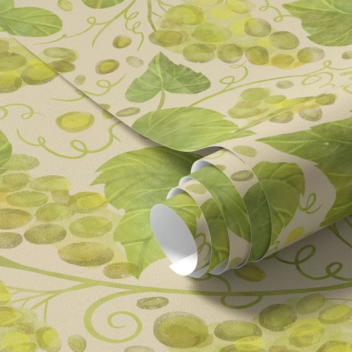 Tapet Druvor och gröna blad på ljus bakgrund Nr. a00834