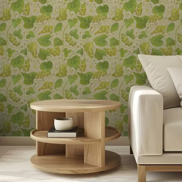 Tapet Druvor och gröna blad på ljus bakgrund Nr. a00834