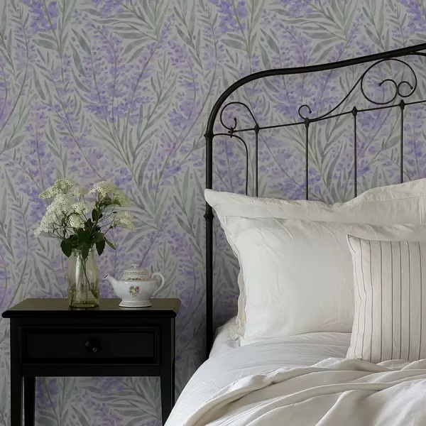 Tapet Lavendelgrenar i lila toner på ljus bakgrund Nr. a00835