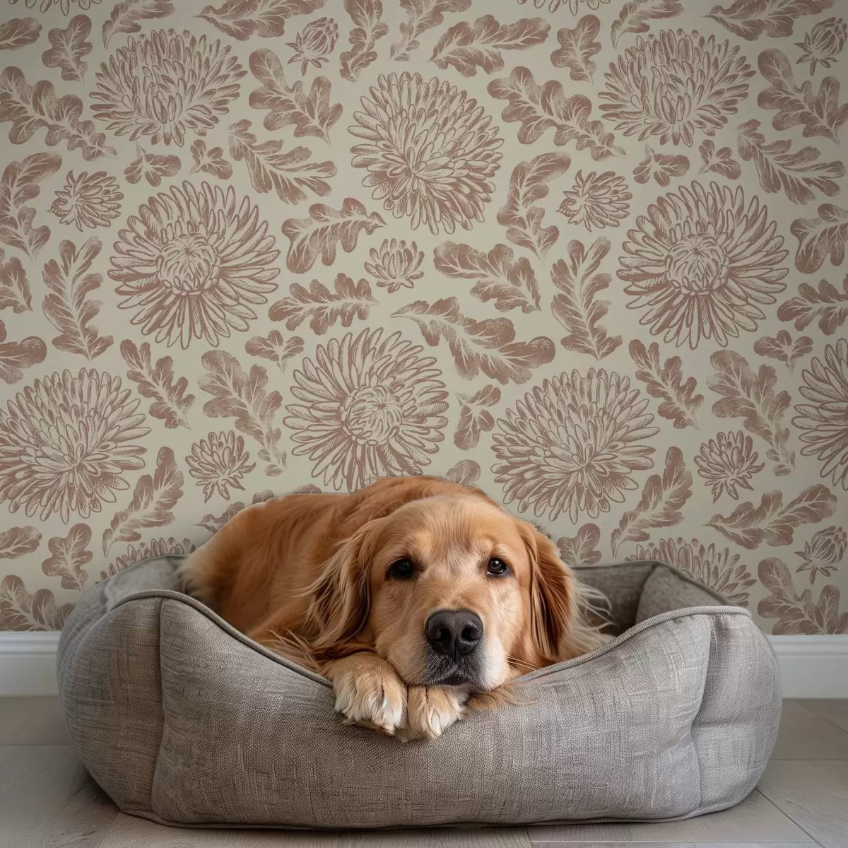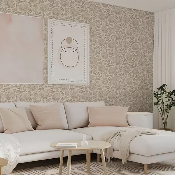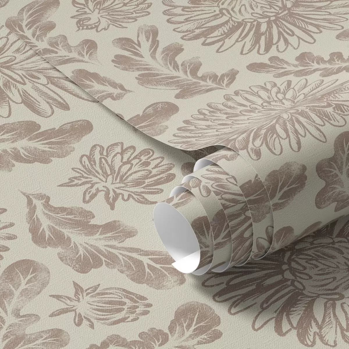 Tapet Krysantemum och ekblad i mjuk beige-brun färg Nr. a00840