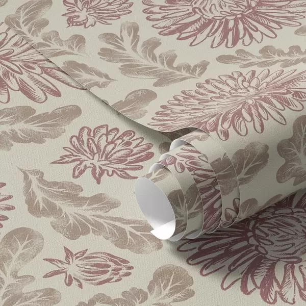 Tapet Krysantemum med vinaccenter på krämfärgat bakgrund Nr. a00840v1