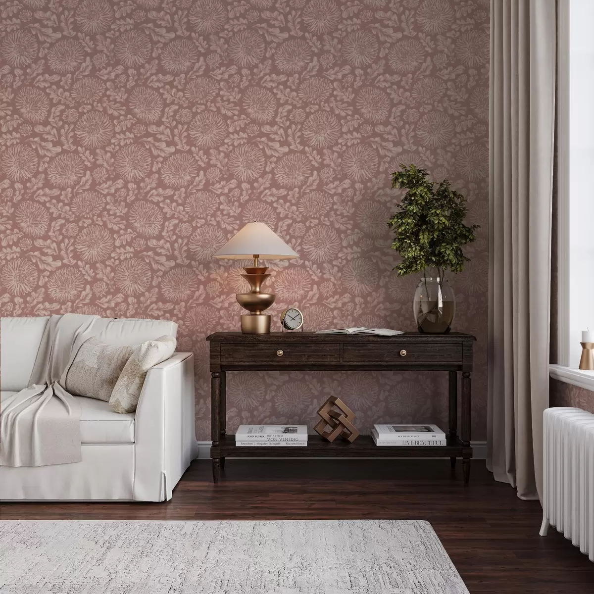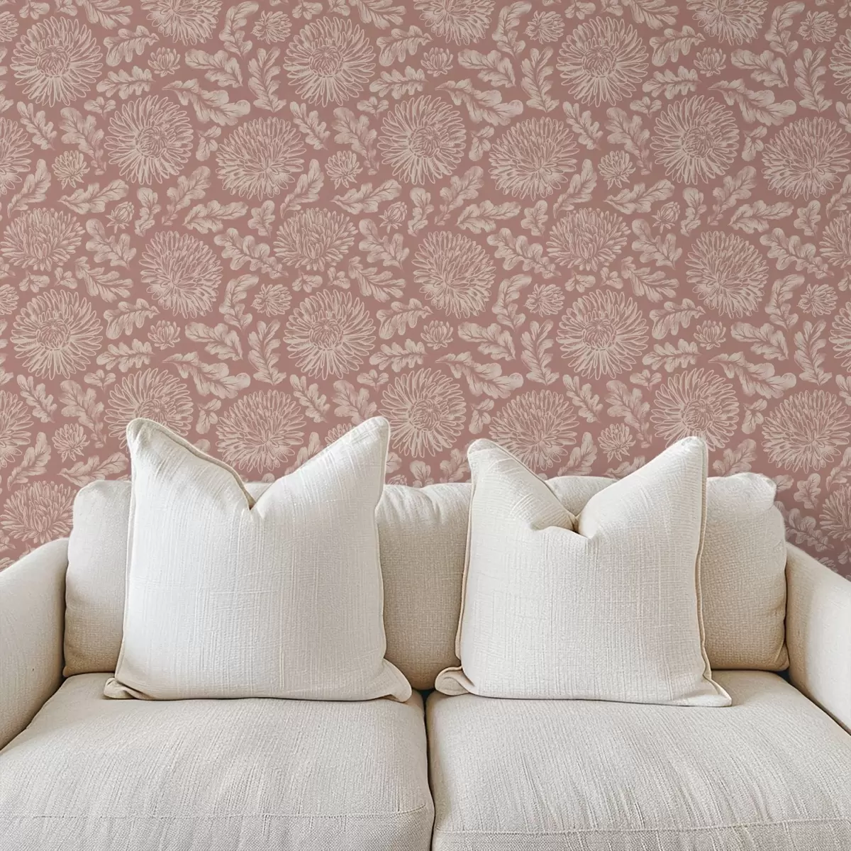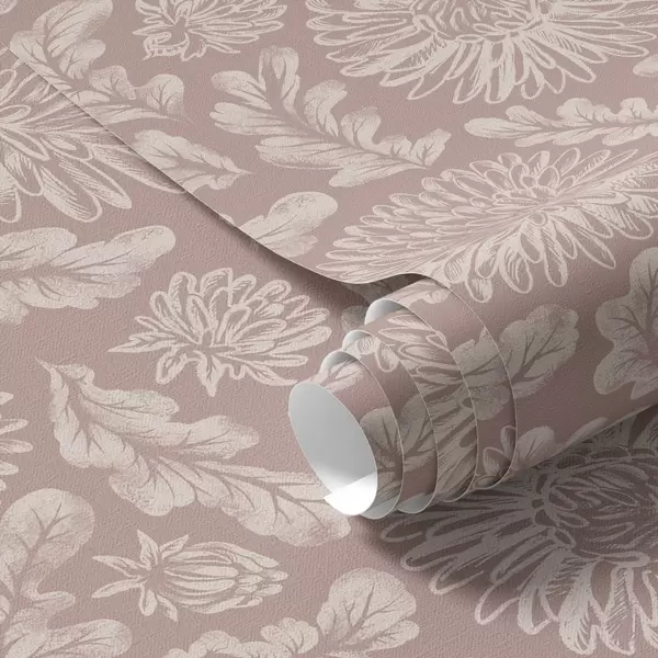 Tapet Krämfärgade krysantemum på dammrosa bakgrund Nr. a00840v2