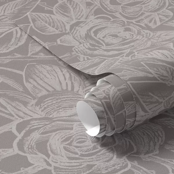 Tapet Graverade rosor på djup gråbrun Nr. a00841