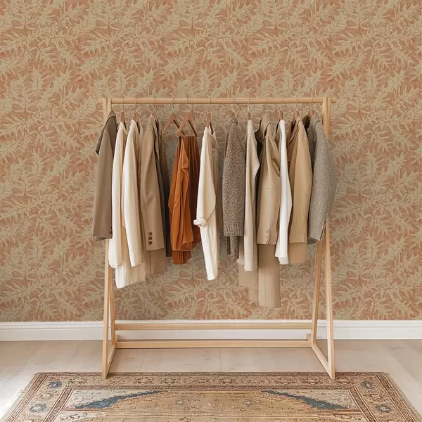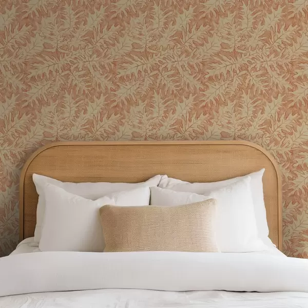 Tapet Stora ekblad i terrakotta på krämfärgat underlag Nr. a00846