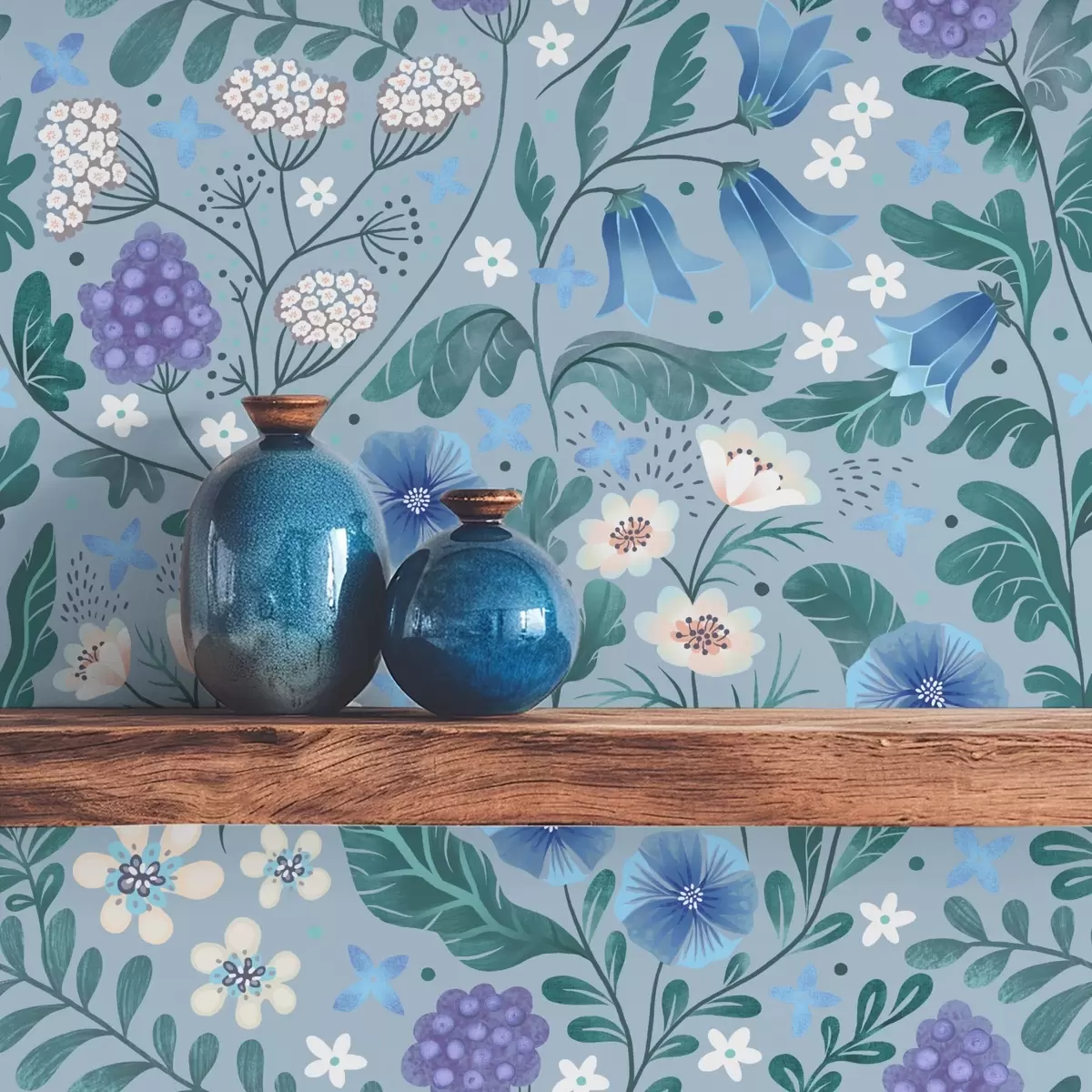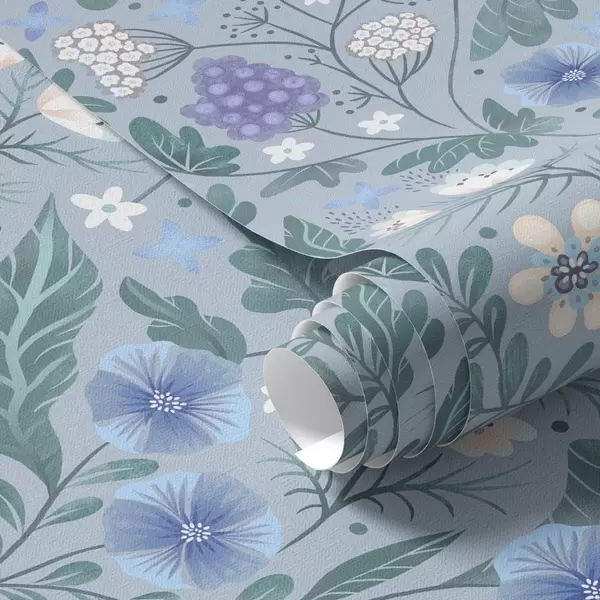 Tapet Vildblommor och bär på gråblå bakgrund Nr. a00849v1