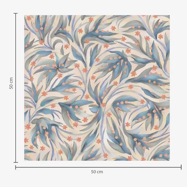 Tapet Abstrakt blått bladverk med korallblommor Nr. a00852