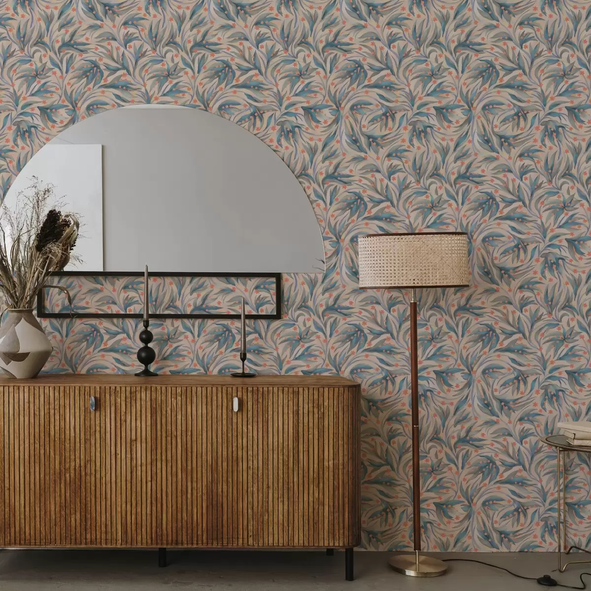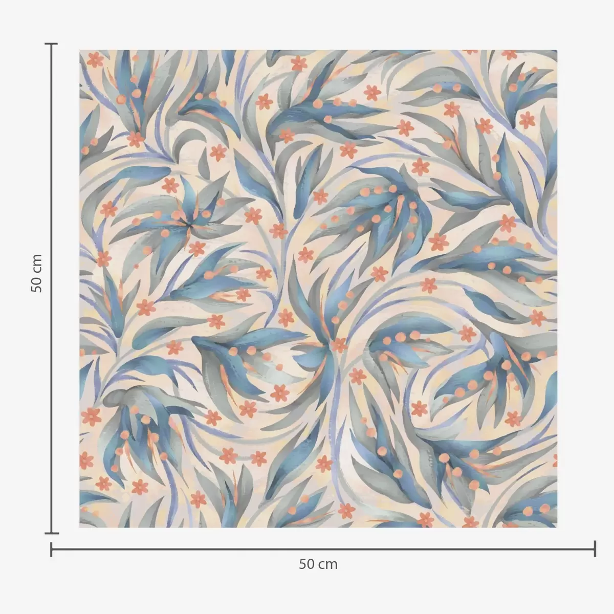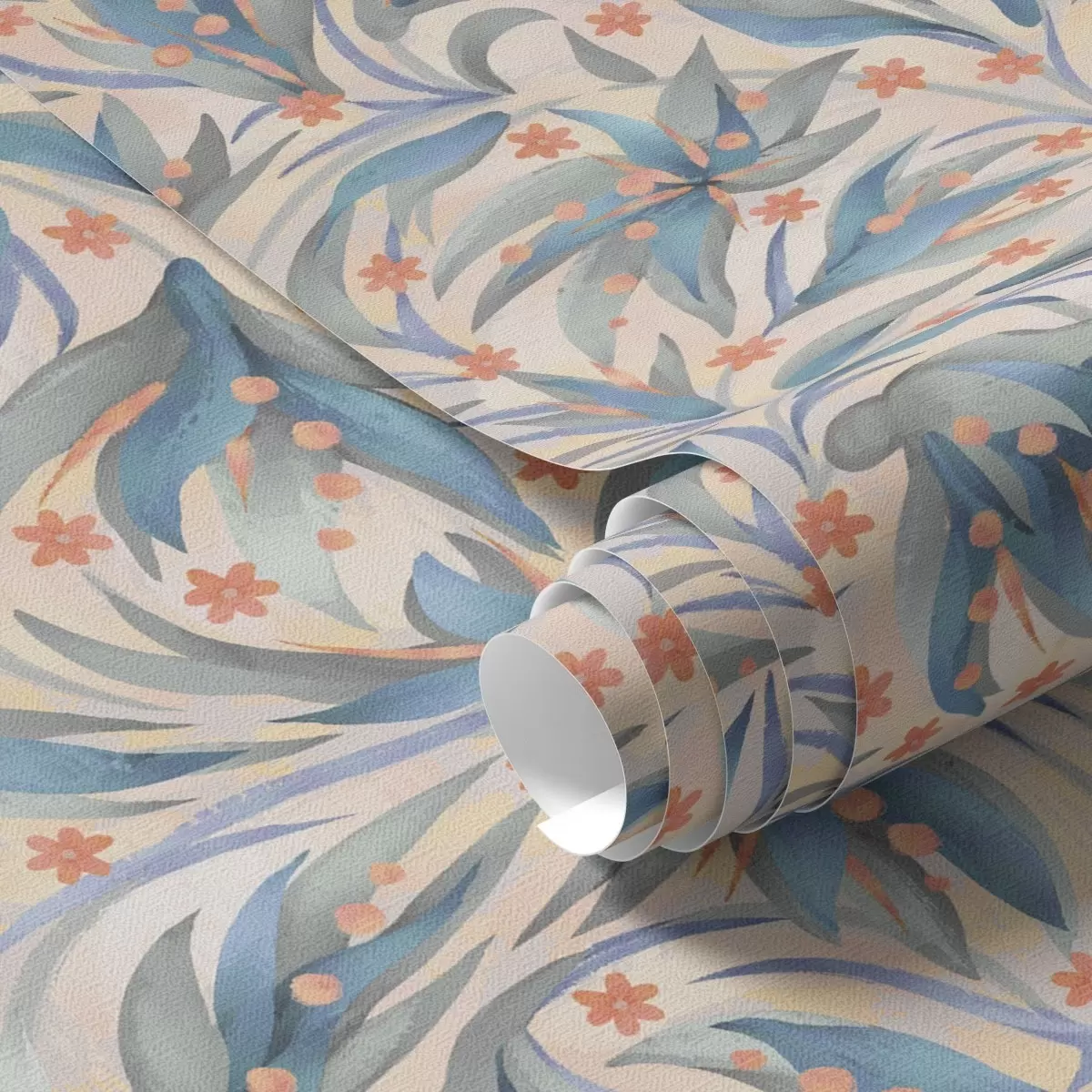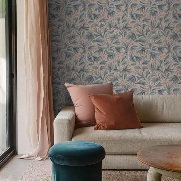 Tapet Abstrakt blått bladverk med korallblommor Nr. a00852