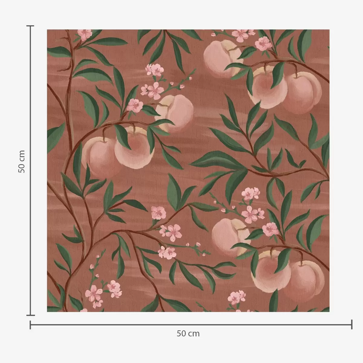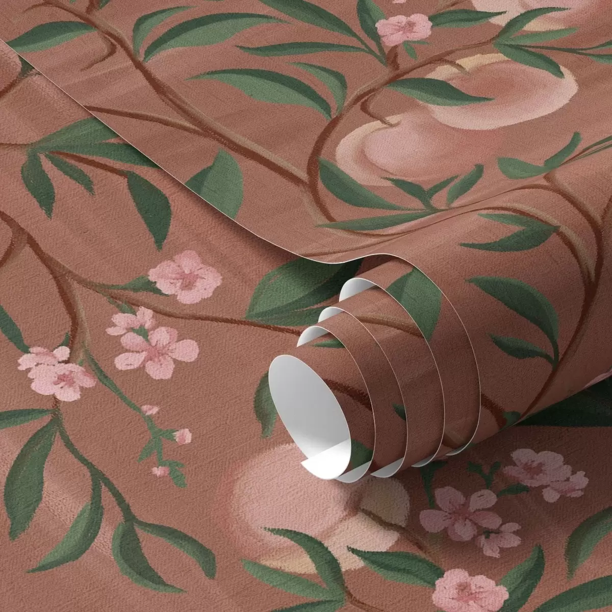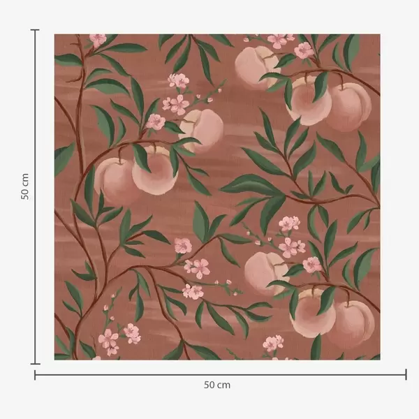 Tapet Persikor på grenar med rosa blommor, terrakottafärgad mark Nr. a00856