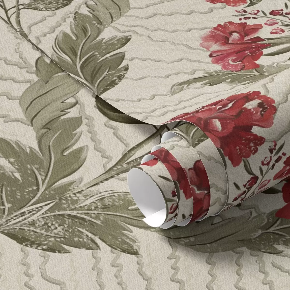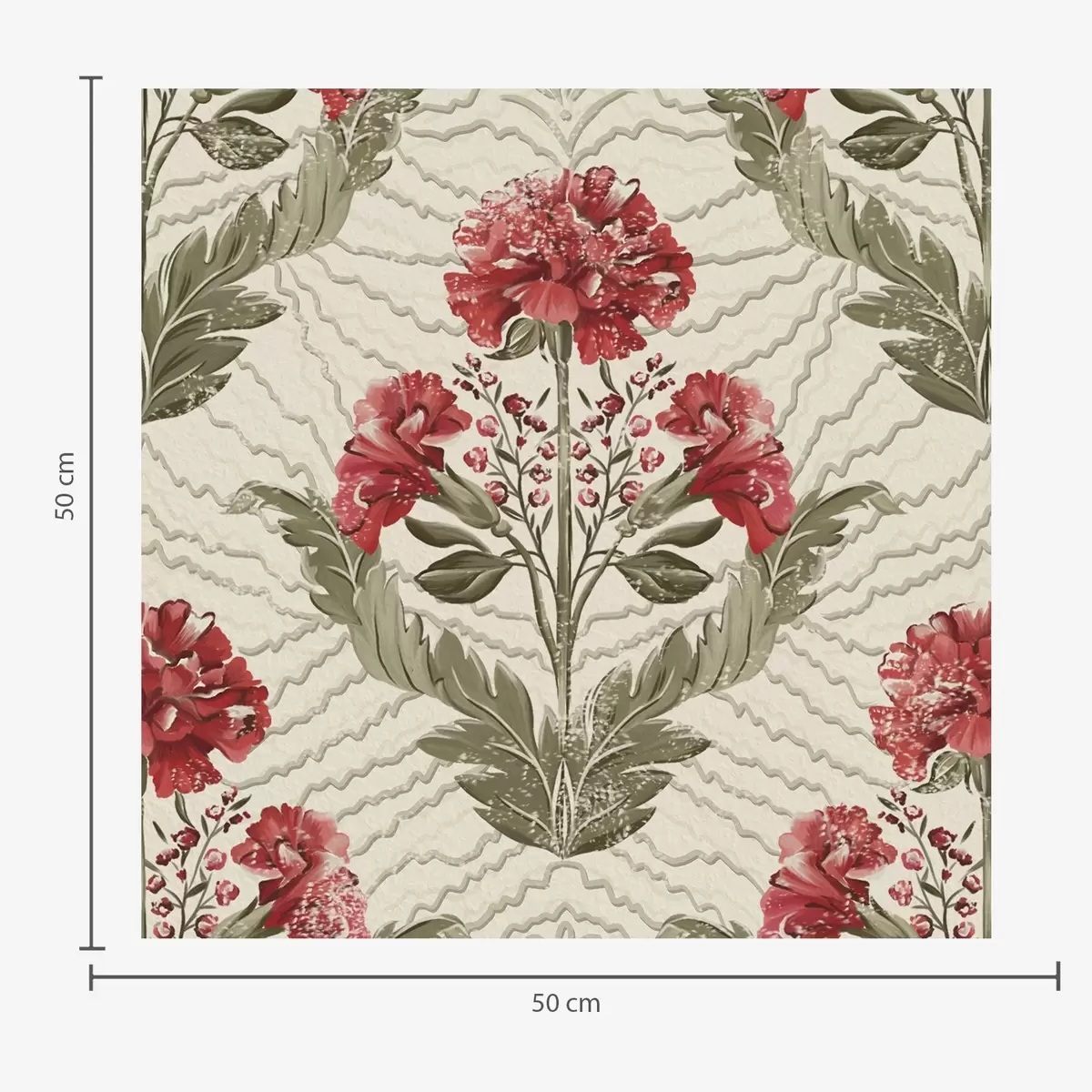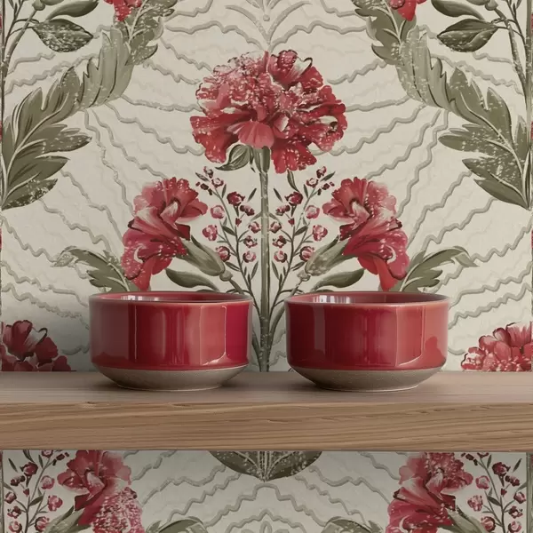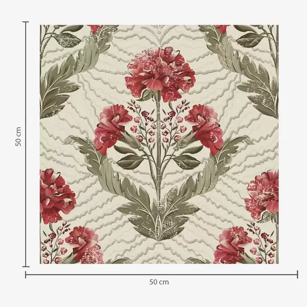Tapet Stora röda pioner med grafisk bakgrund, krämfärgad botten Nr. a00857