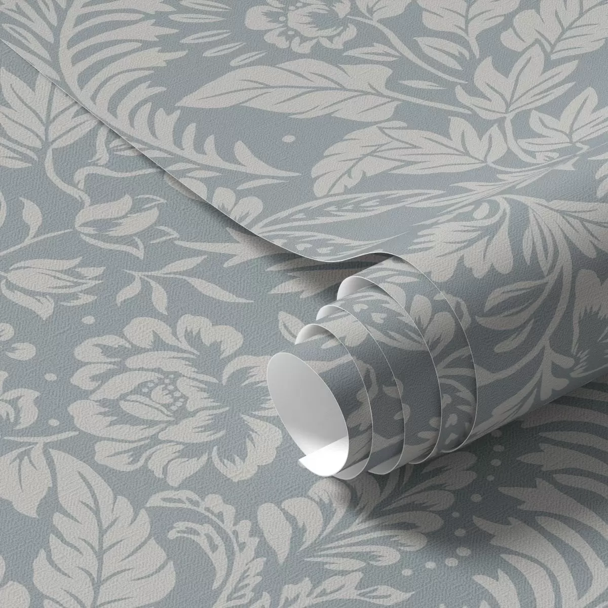 Tapet Monokromt blommönster på gråblå bakgrund Nr. a00859