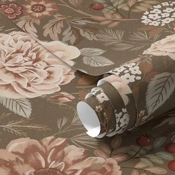 Tapet Varma rosor och bär på brun bakgrund Nr. a00868