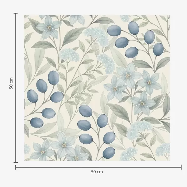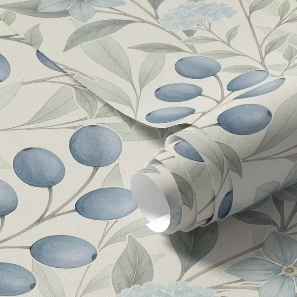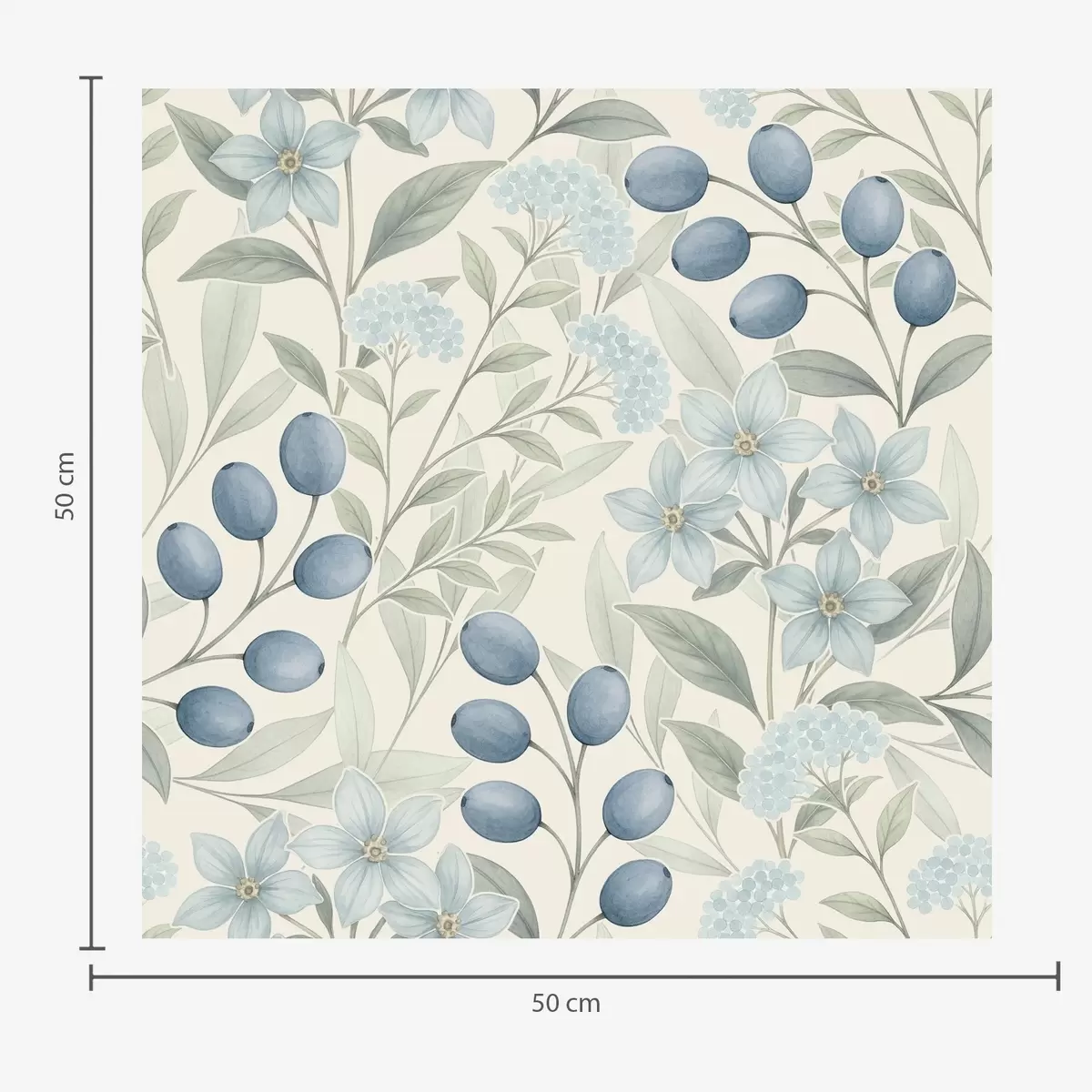 Tapet Blå bär och ljusa blommor på elfenben Nr. a00872