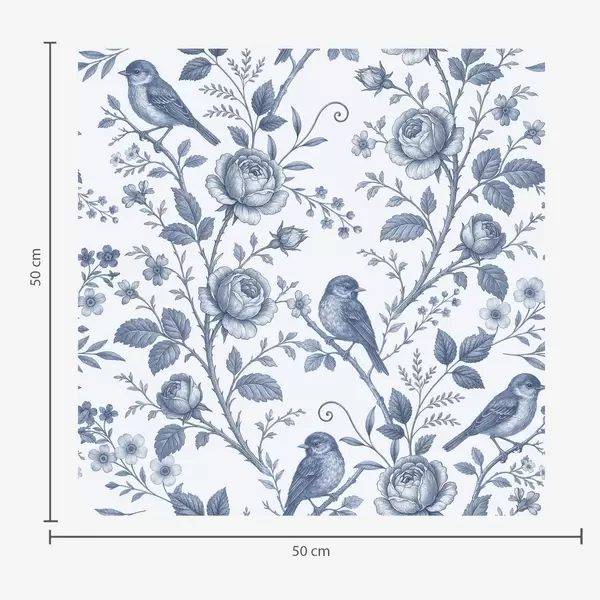 Tapet Blå toile-fåglar och rosor på vitt Nr. a00873