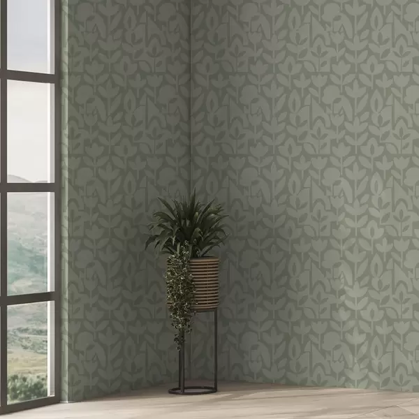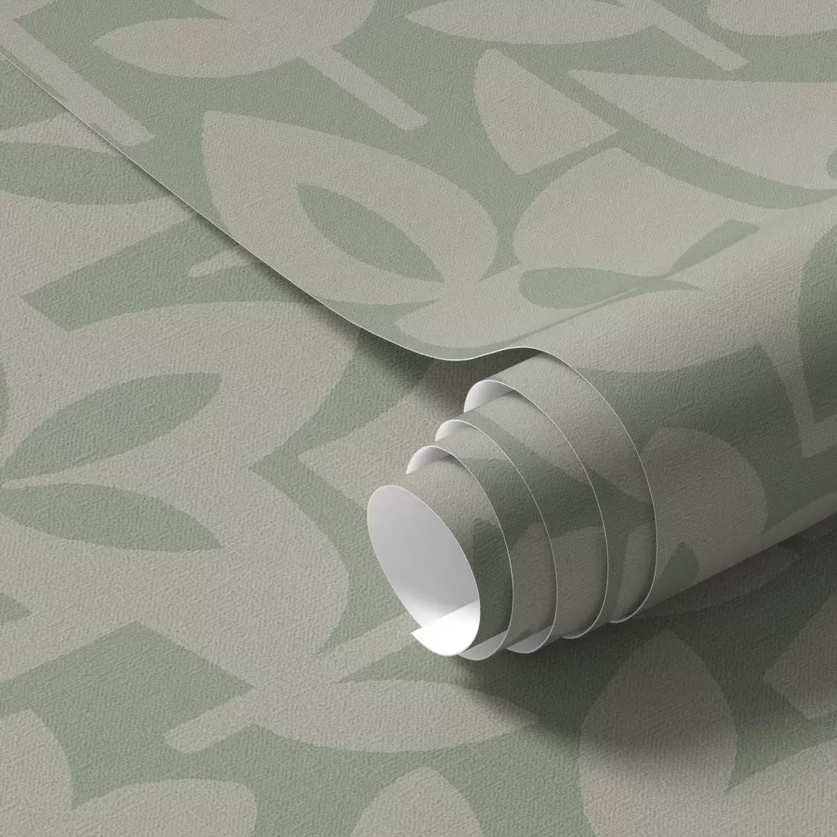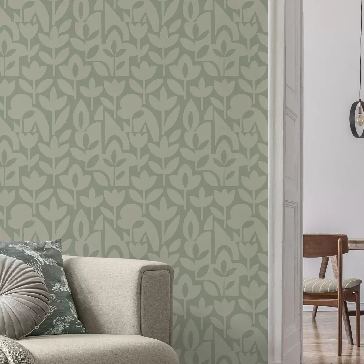 Tapet Geometriska blommiga silhuetter i mjuk salvia Nr. a00875v1