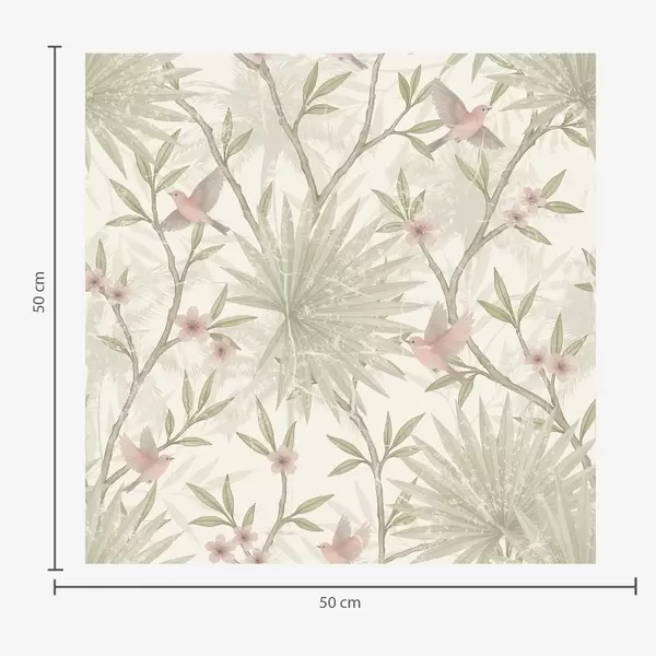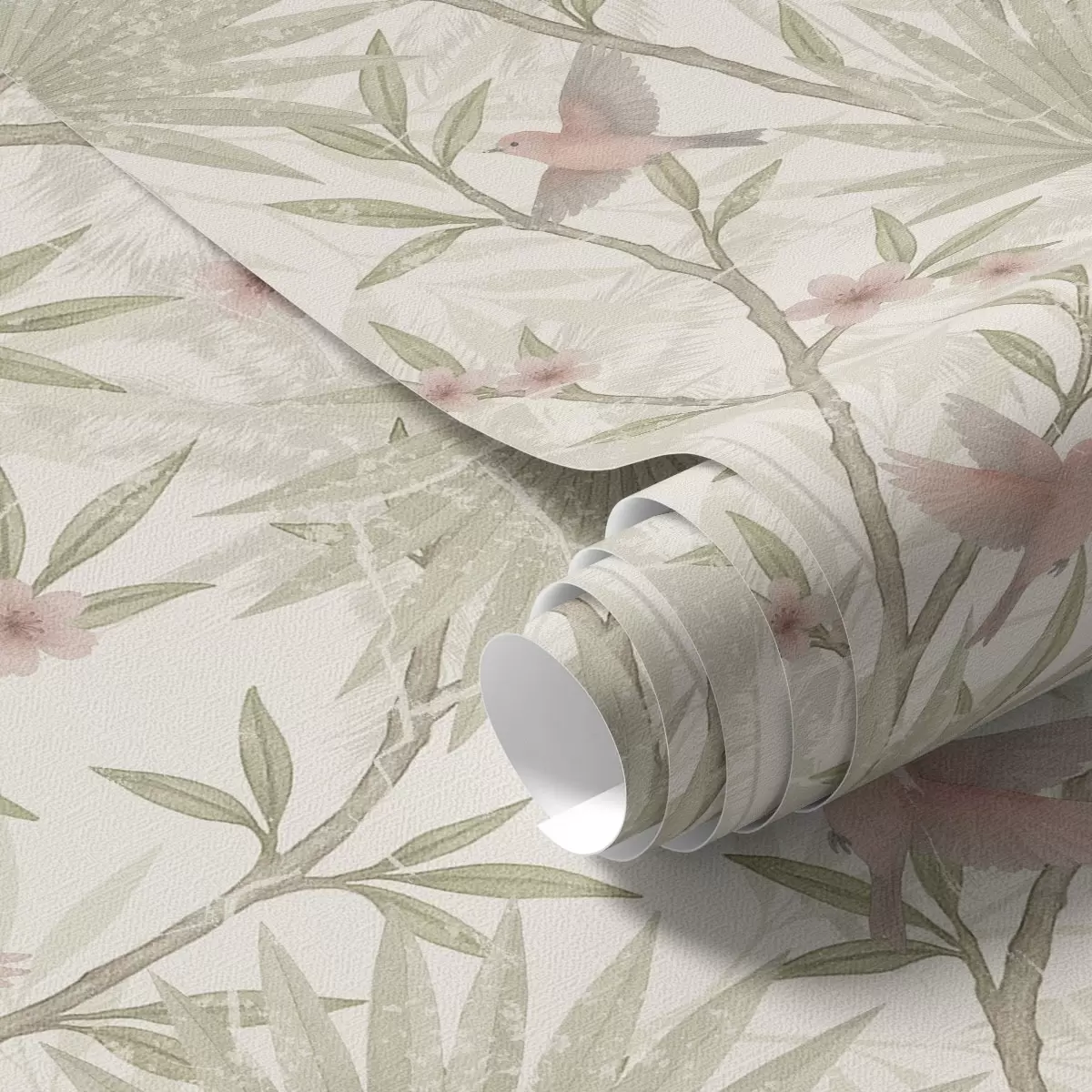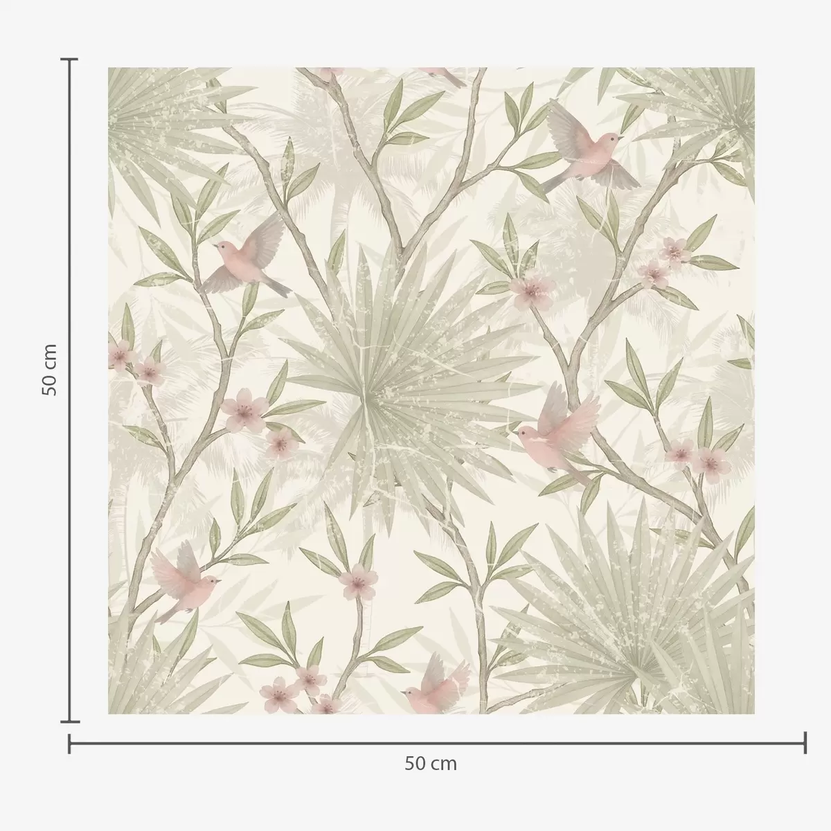 Tapet Delikata rosa fåglar bland palmblad Nr. a00883