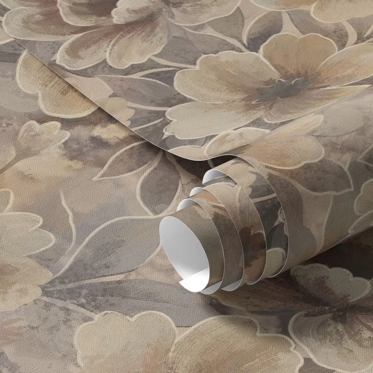 Tapet Målningsliknande beige blommor på en rökig abstrakt bakgrund Nr. a00884