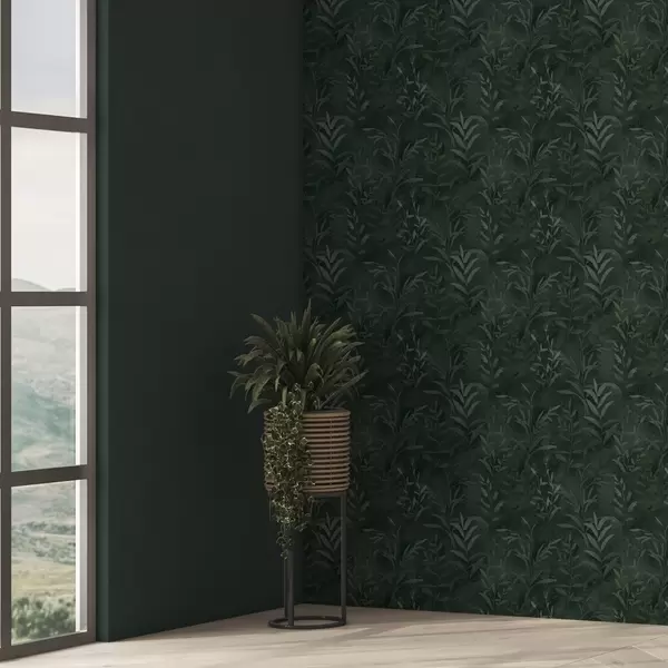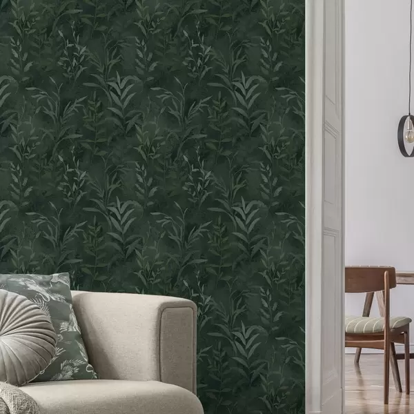Tapet Mörkgrön bakgrund med genomskinliga bladgrenar Nr. a00888