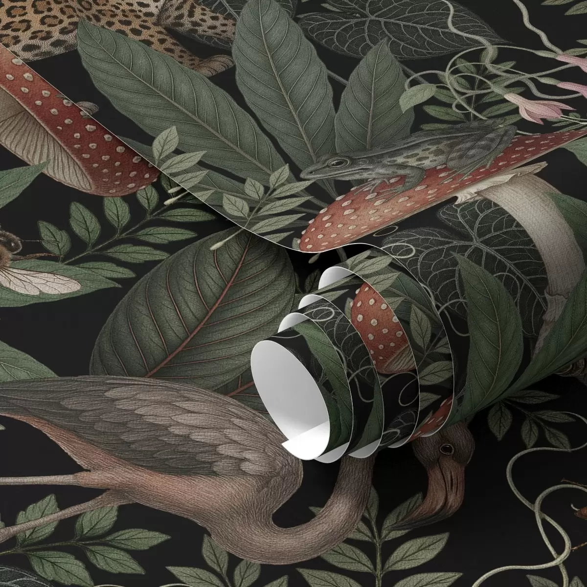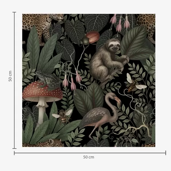 Tapet Nattliga djungelinvånare i frodig, detaljerad grönska Nr. a00896