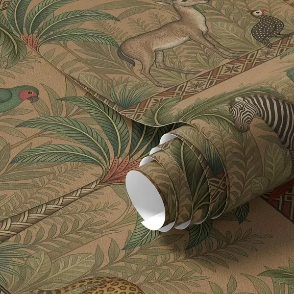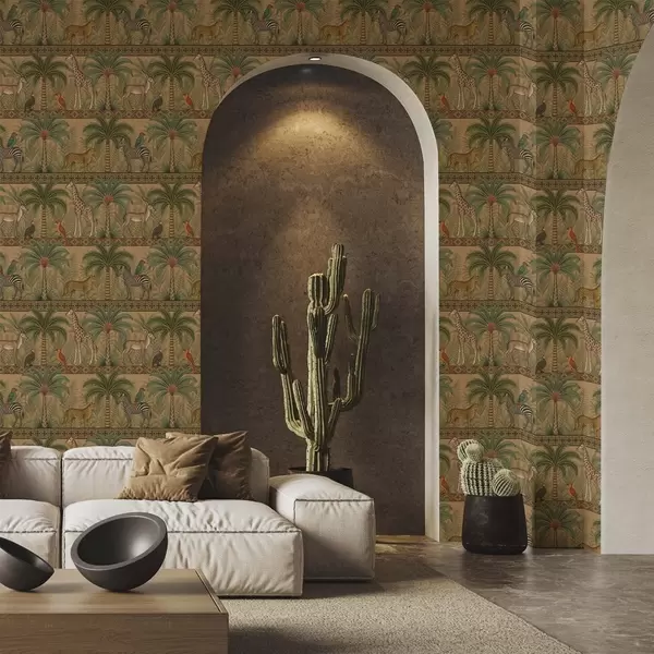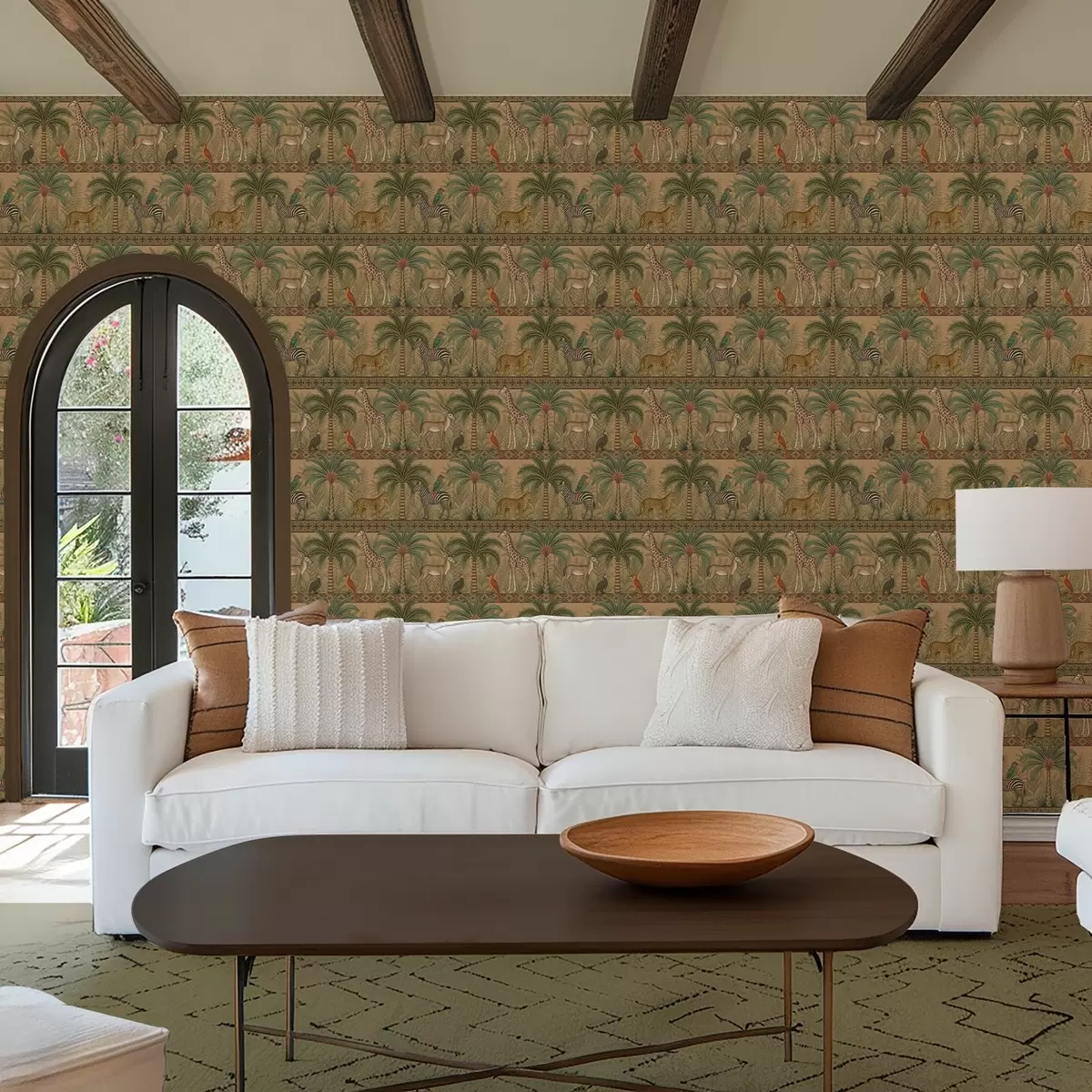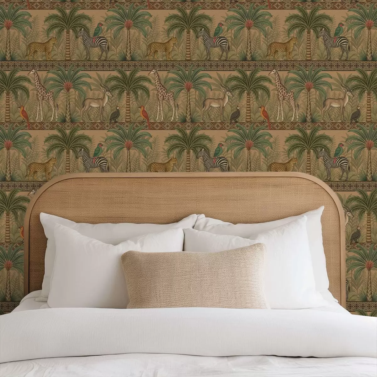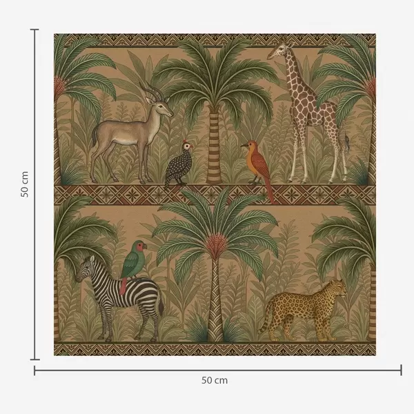 Tapet Dekorativa savann djur mellan palmer och gränser Nr. a00898