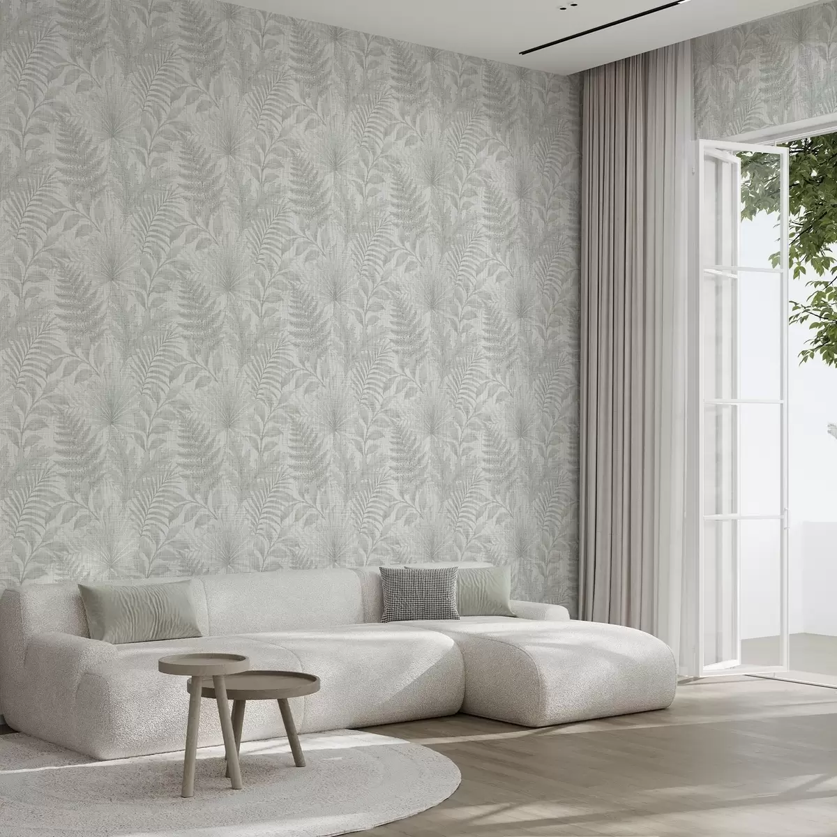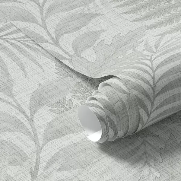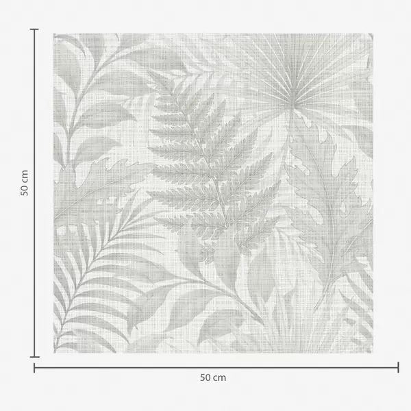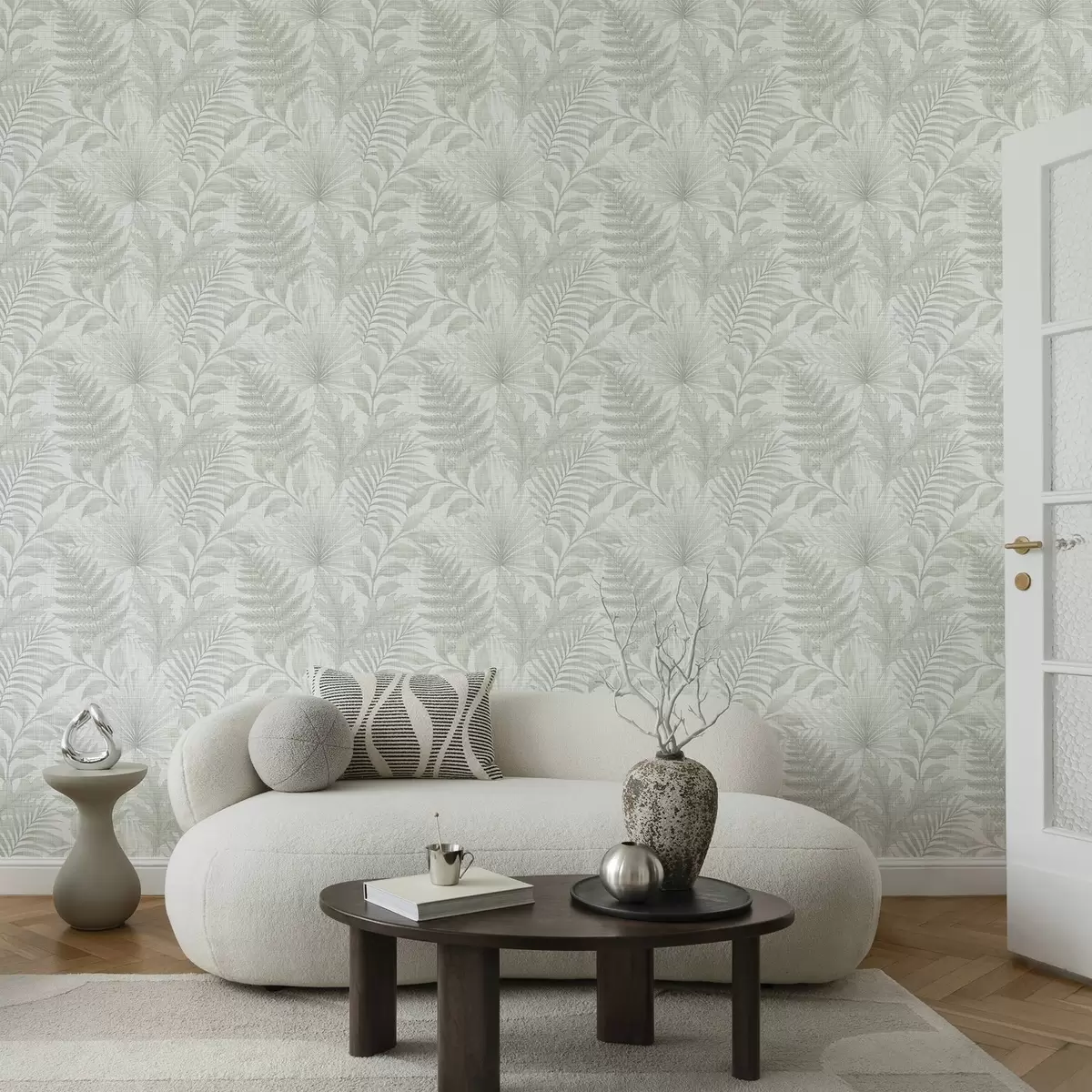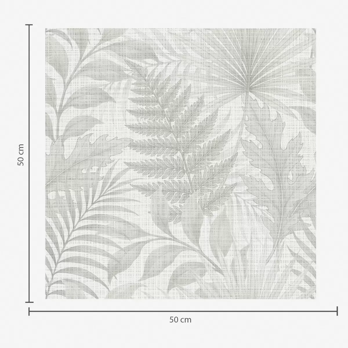 Tapet Mjuka tropiska blad i ljusgrått på linne-struktur Nr. a00899