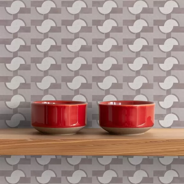 Tapet Lila modulära plattor med sammankopplade halvcirklar Nr. a00915