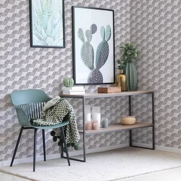 Tapet Trianglar som kombinerar lila och grå nyanser Nr. a00917v2