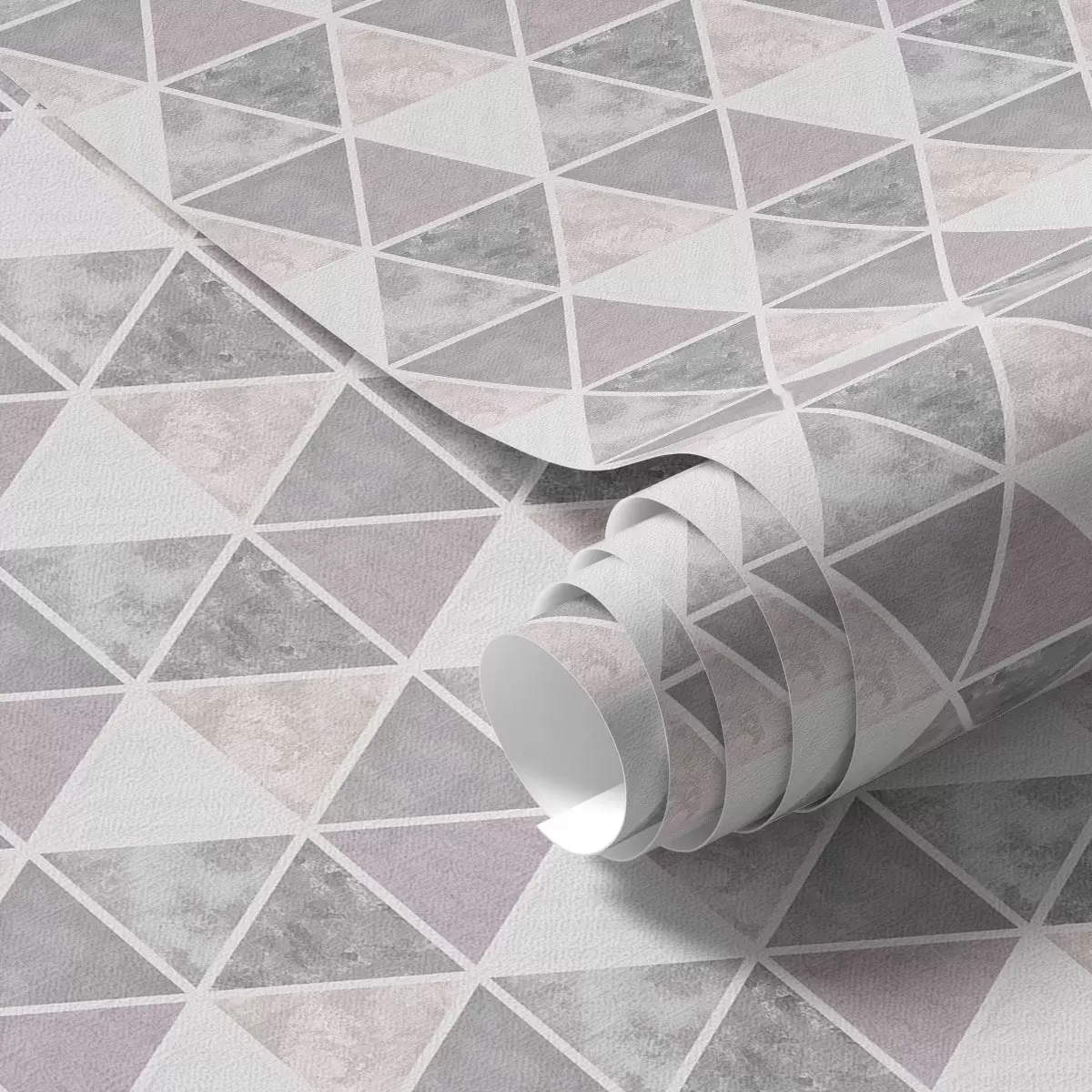 Tapet Geometriskt triangelmönster i gråa och pudriga toner Nr. a00920